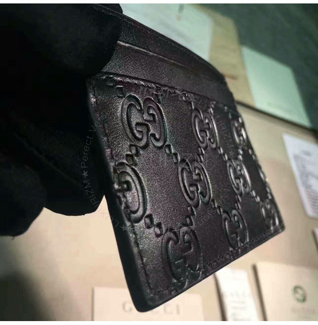 확고 한 감촉을 가진 debossed 구찌 시그너처 레더로 만든 슬림 카드 케이스.