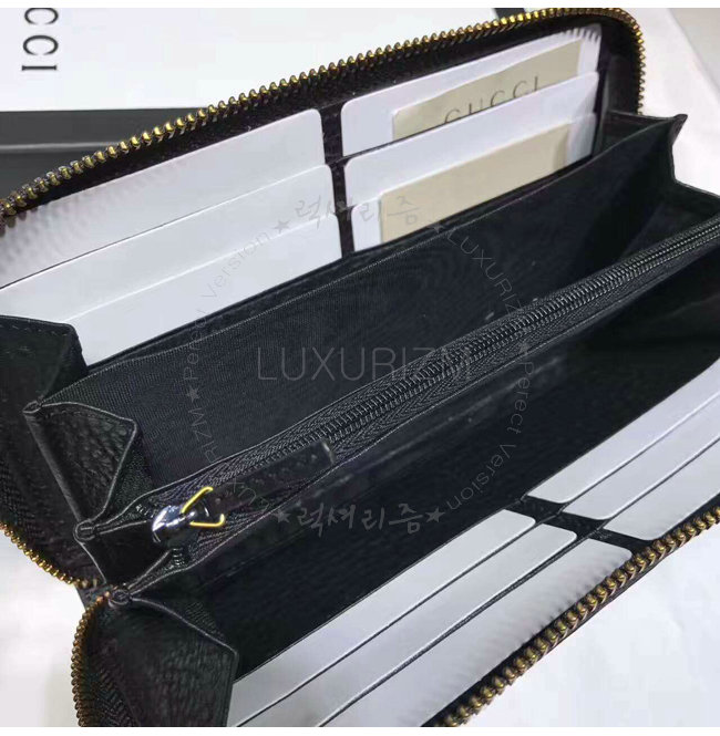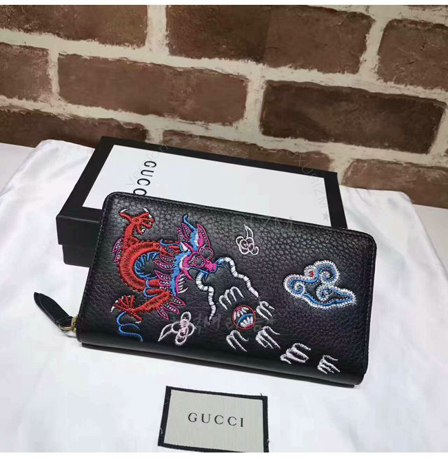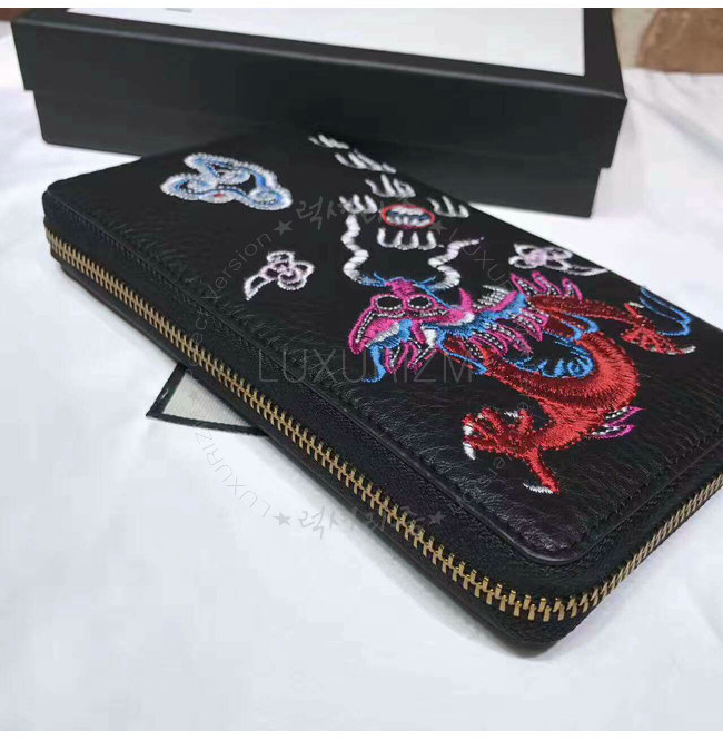 [스페셜오더]GUCCI-473931 1058 구찌 블랙 가죽 드래곤 자수 집 어라운 월릿