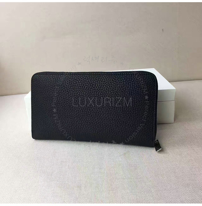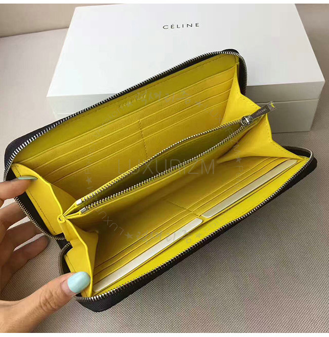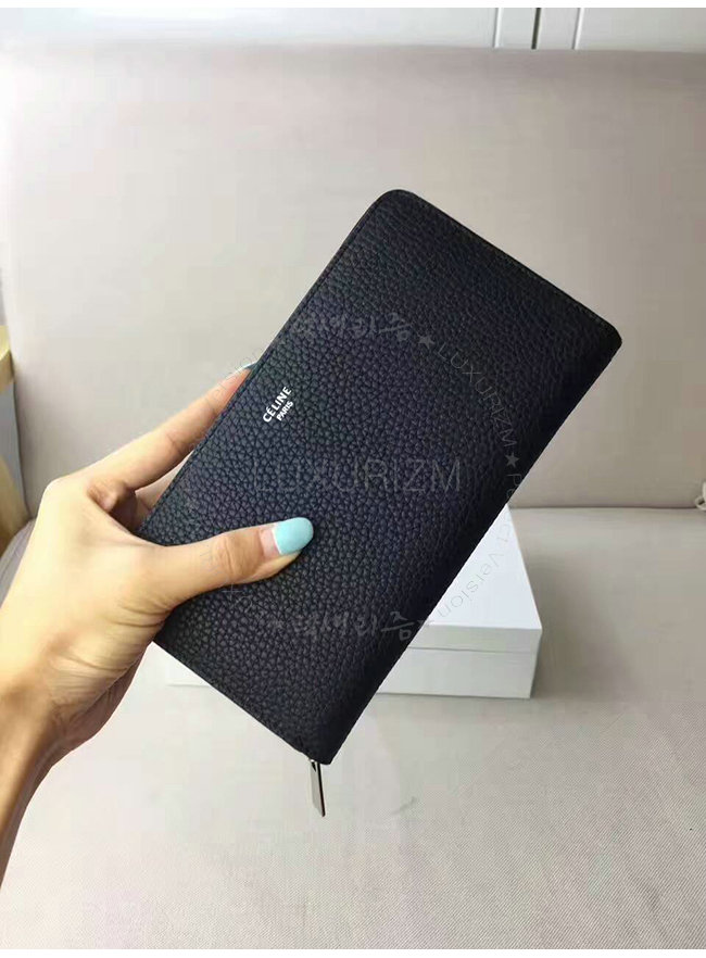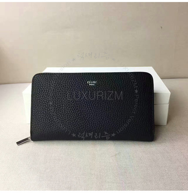 CELINE-105003 셀린느 라지 지퍼 카프스킨 라운드 블랙 장지갑 여성용