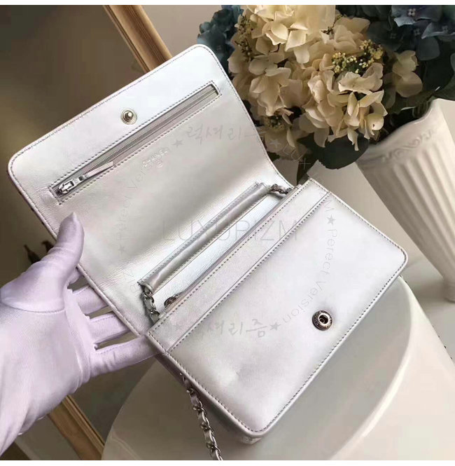 [스페셜오더]CHANEL-A82656 샤넬 메탈릭 램스킨 실버 메탈 체인 지갑 실버