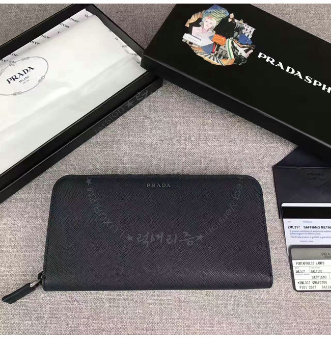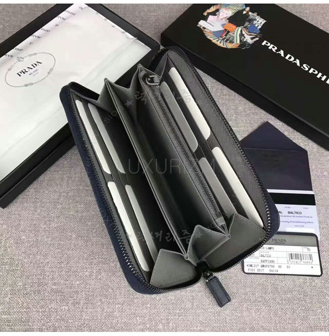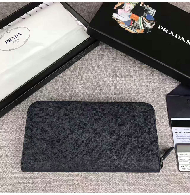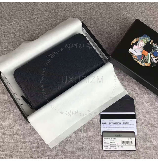 [스페셜오더]PRADA-2ML317 프라다 사피아노 가죽 지퍼 지갑 블랙 네이비 내피