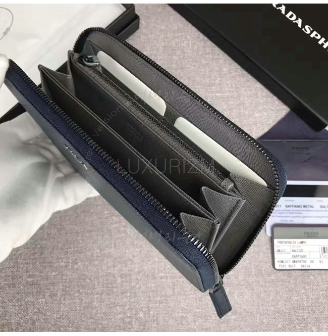[스페셜오더]PRADA-2ML317 프라다 사피아노 가죽 지퍼 지갑 네이비