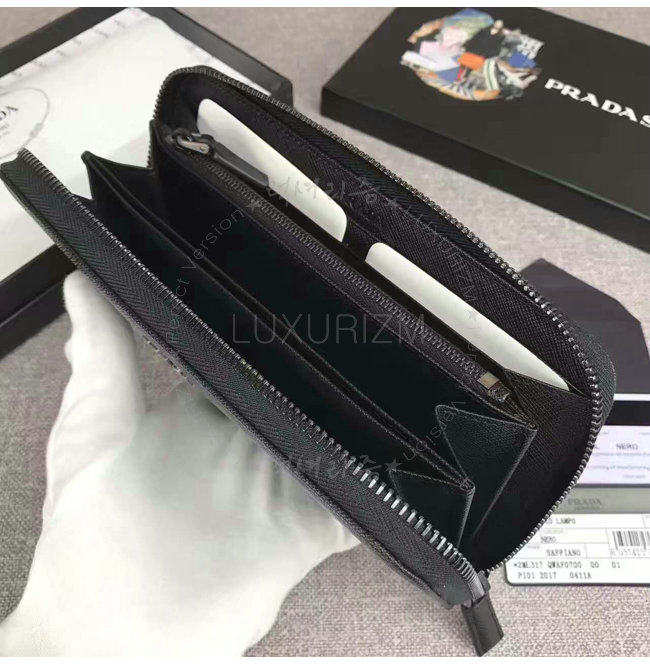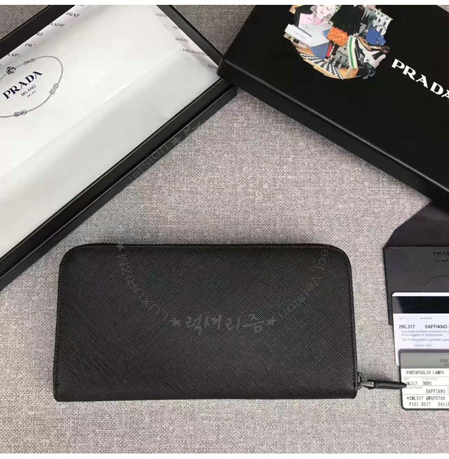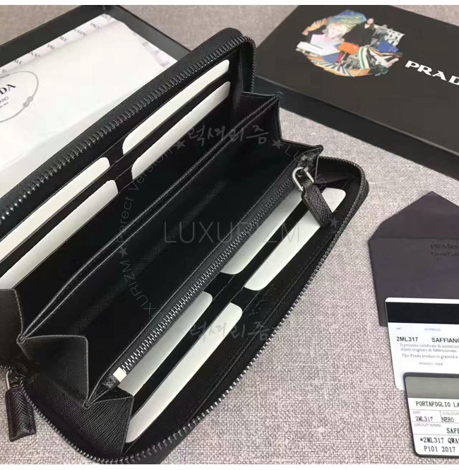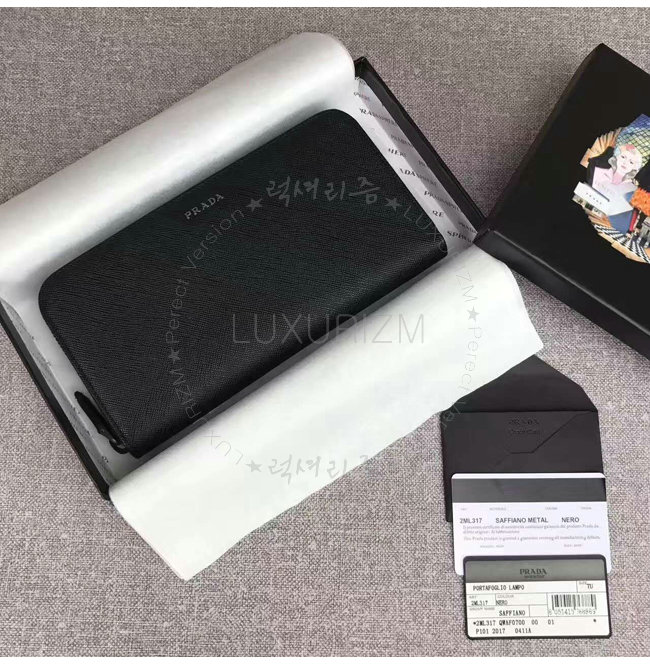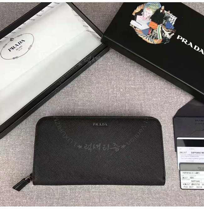 [스페셜오더]PRADA-2ML317 프라다 사피아노 가죽 지퍼 지갑 블랙