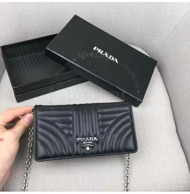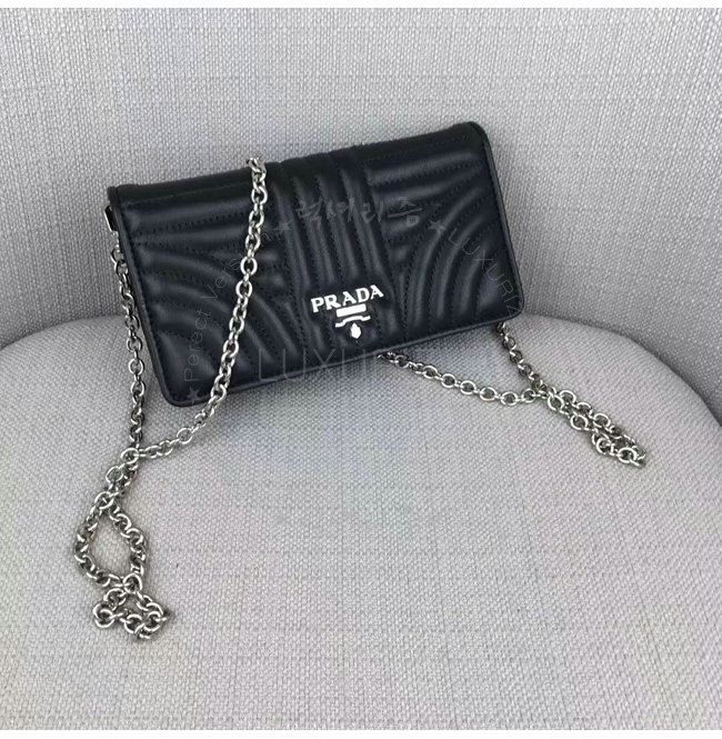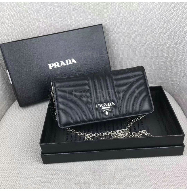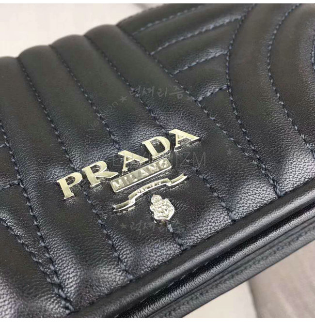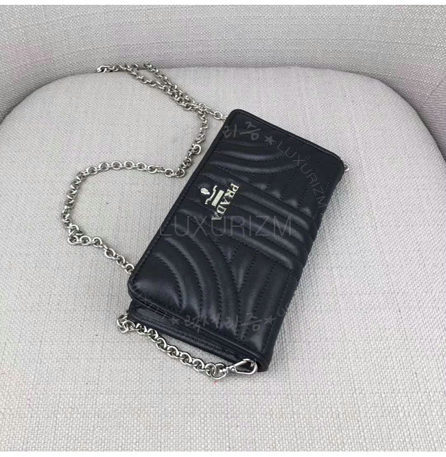 [스페셜오더]PRADA-1ZH044 프라다 송아지 가죽 메탈 레터링 로고 블랙 스마트폰 케이스