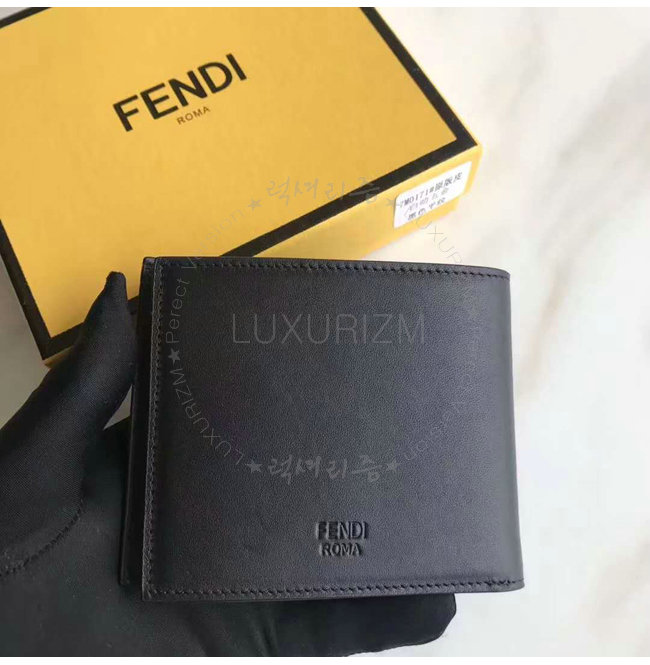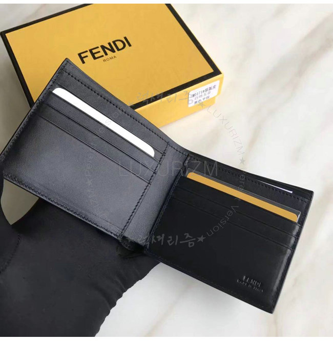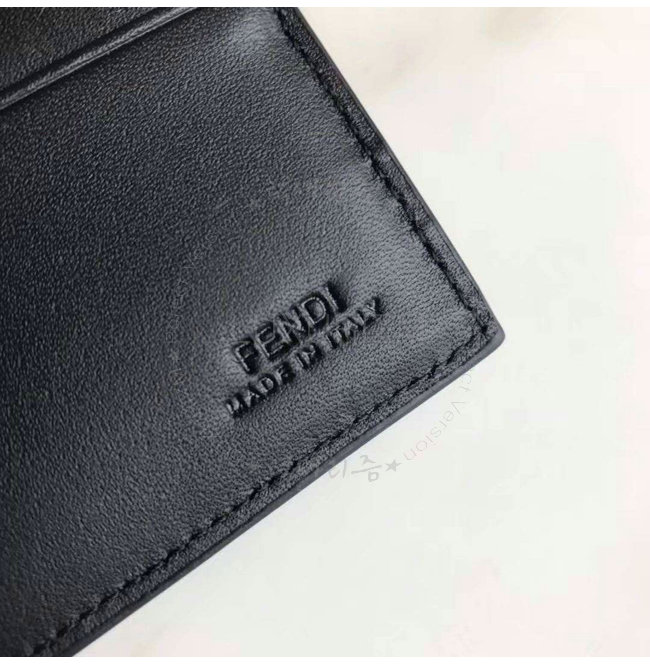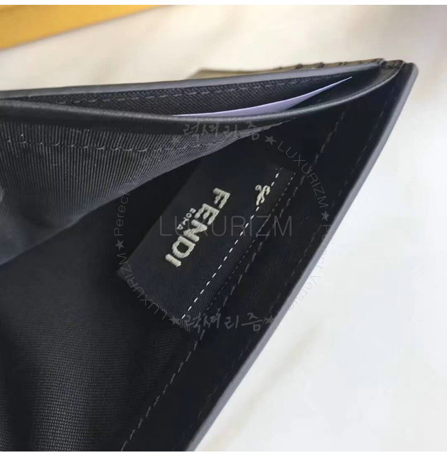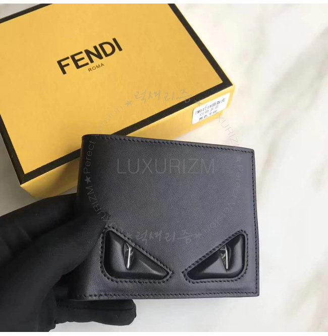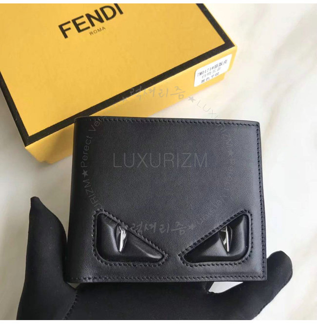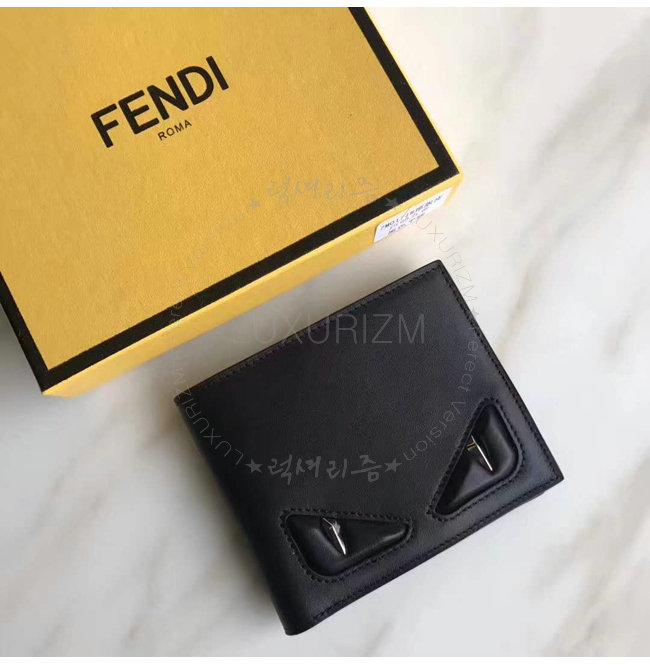 [스페셜오더]FENDI-7M0169 펜디 송아지 가죽 백 버그 아이 메탈 스터드 디테일 블랙 반지갑