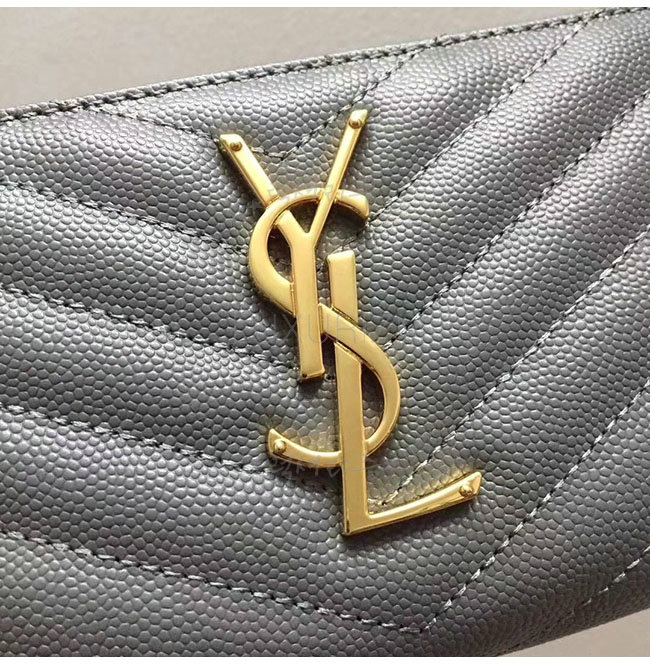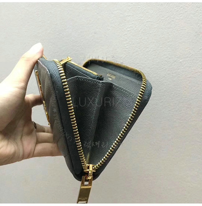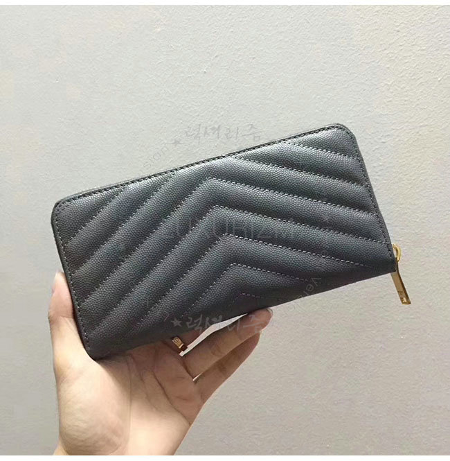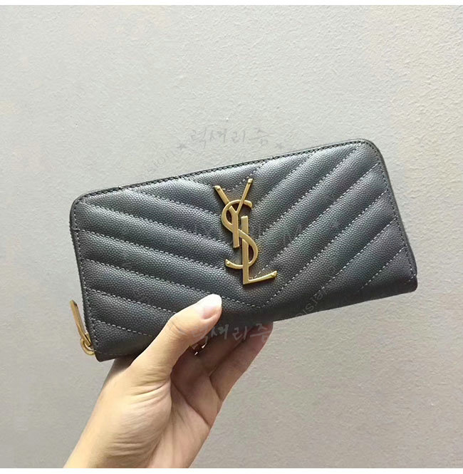 [스폐셜오더]SAINT LAURENT-358094 생로랑 그레이 그랑 드 뿌드르 텍스처드 마틀라세 가죽 소재의 금장 모노그램 생 로랑 지퍼 어라운드 지갑