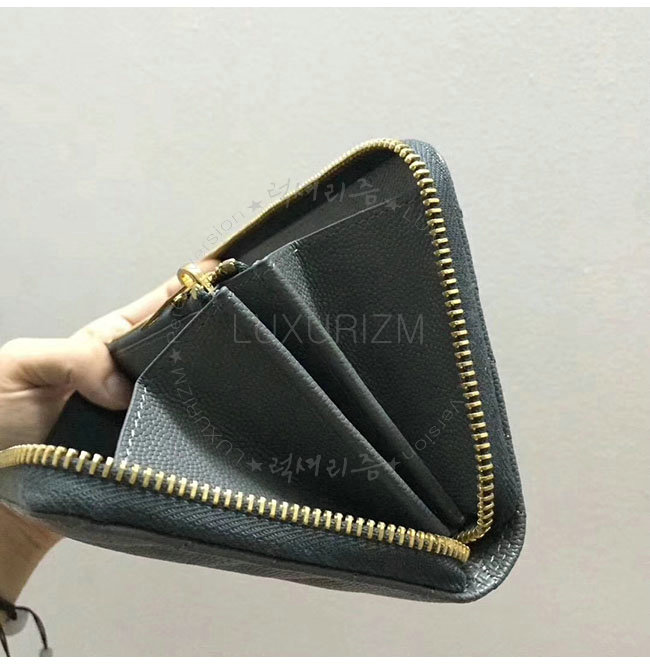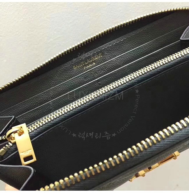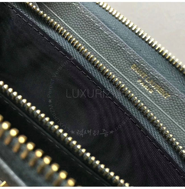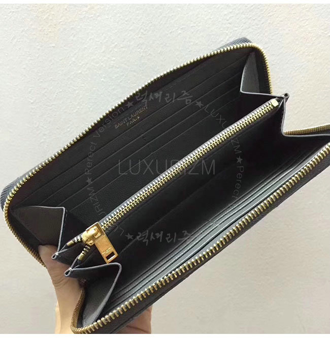 [스폐셜오더]SAINT LAURENT-358094 생로랑 블랙 그랑 드 뿌드르 텍스처드 마틀라세 가죽 소재의 금장 모노그램 생 로랑 지퍼 어라운드 지갑