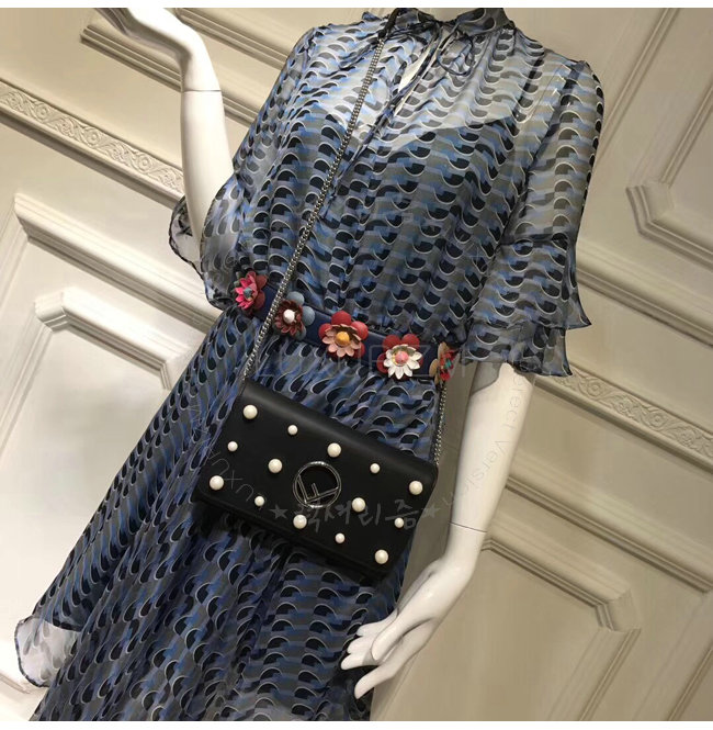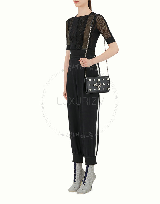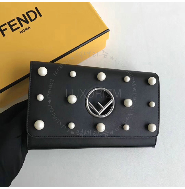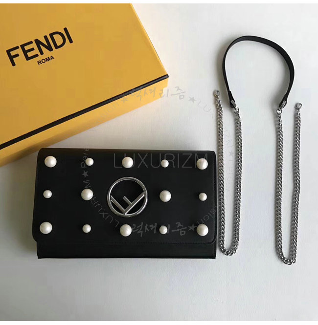 [스페셜오더]FENDI-8BS004 펜디 송아지 가죽 F IS FENDI 진주 장식 블랙 체인 지갑