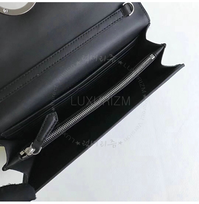 카드 슬롯 8개 플랫 포켓 지퍼 포켓 장식. 탈부착 가능한 체인 및 가죽 숄더 스트랩. 블랙 컬러의