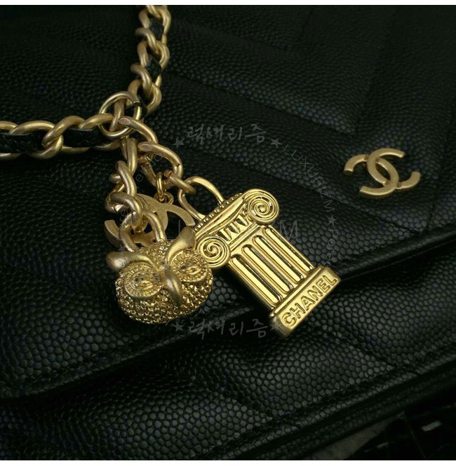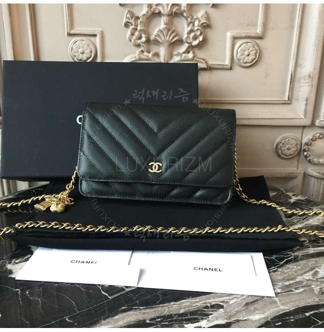 [스페셜오더]CHANEL-A33814 샤넬 그레인드 램스킨 참 장식 골드 메탈 블랙 클래식 체인 지갑