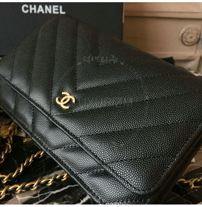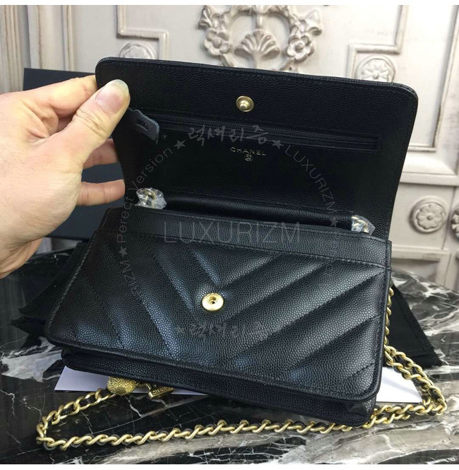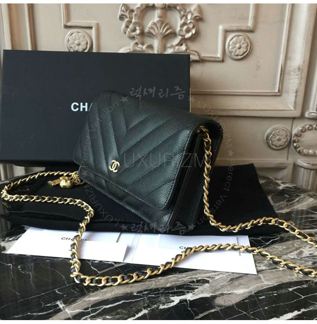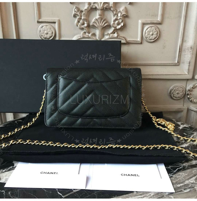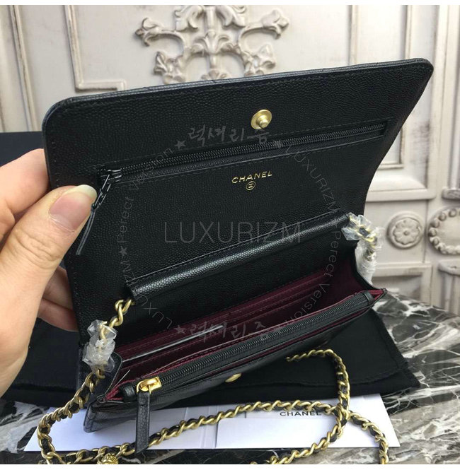 [스페셜오더]CHANEL-A33814 샤넬 클래식 캐비어 블랙 골드메탈 체인 지갑