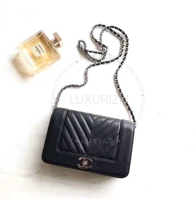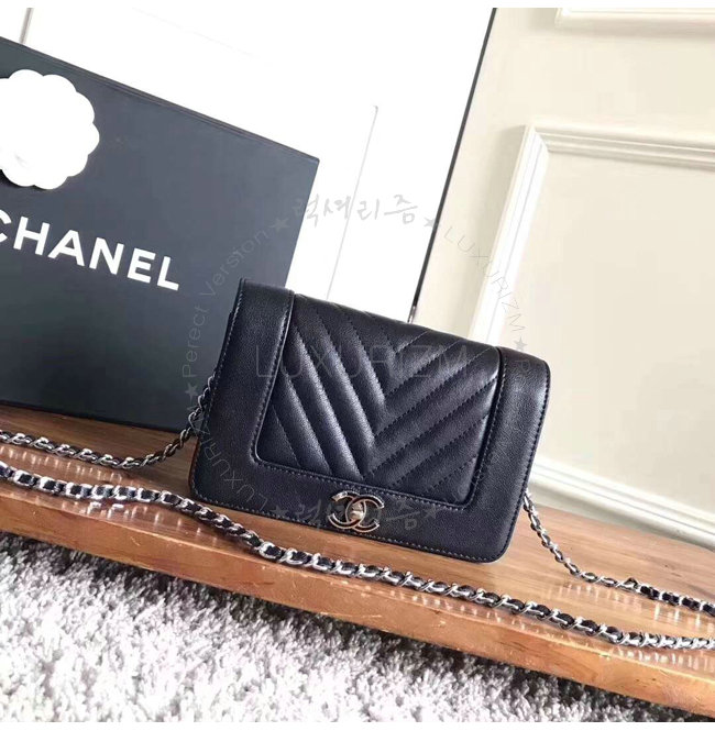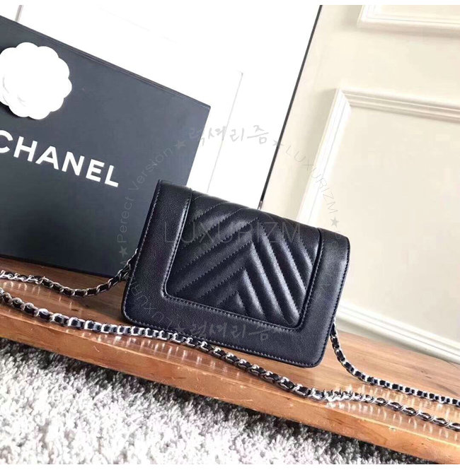 [스페셜오더]CHANEL-A80972 샤넬 쉽스킨 골드 메탈 블랙 체인 지갑