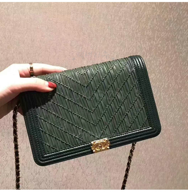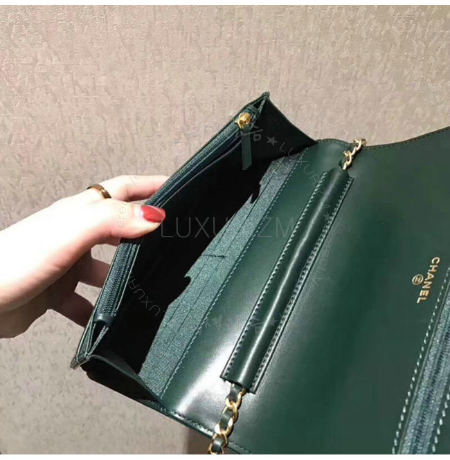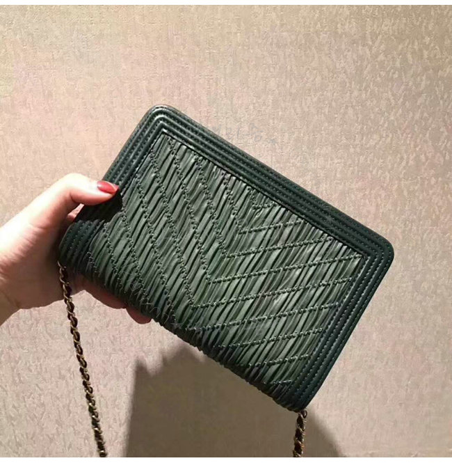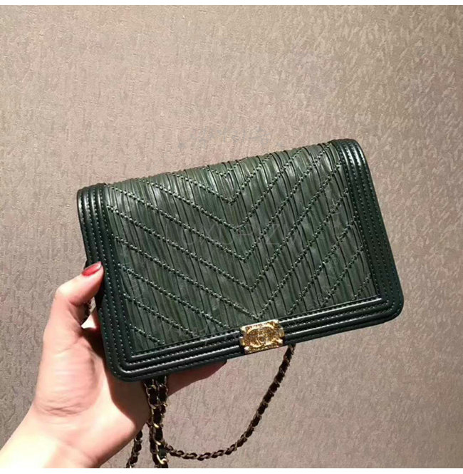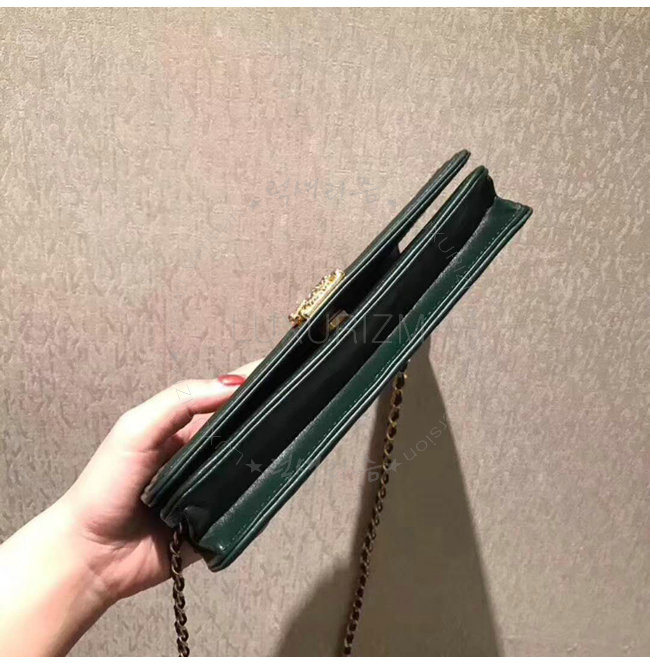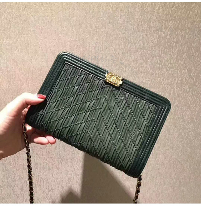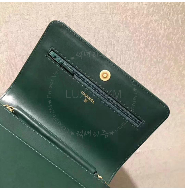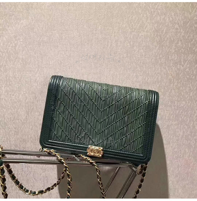 [스페셜오더]CHANEL-A70143 샤넬 플리츠 크럼플드 카프스킨 골드 메탈 그린 보이 샤넬 체인 지갑
