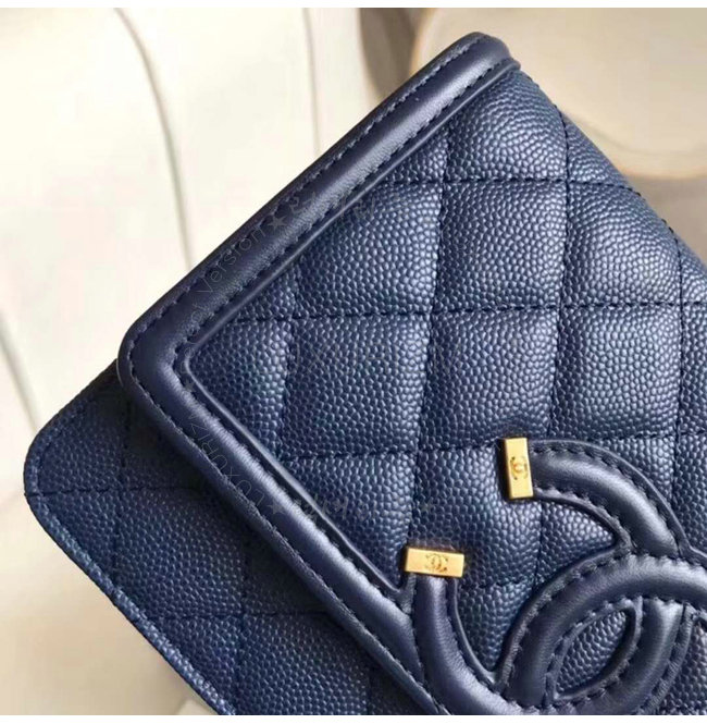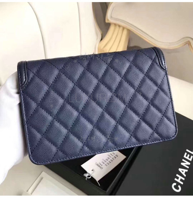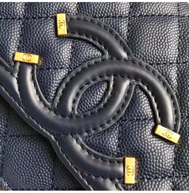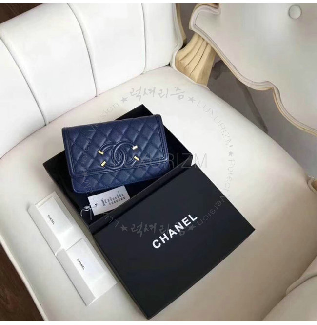 [스페셜오더]CHANEL-A84451 샤넬 그레인드 카프스킨 골드 메탈 네이비 체인 지갑