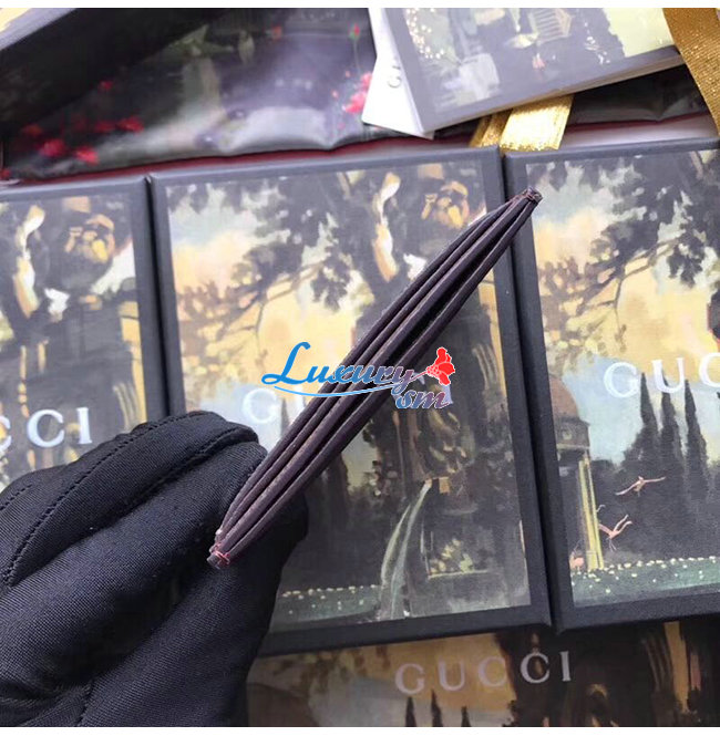 트리밍그린/레드 웹(Web) 디테일 골드 톤 메탈 장식 더블 G 4개의 카드 슬롯.