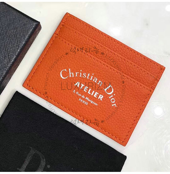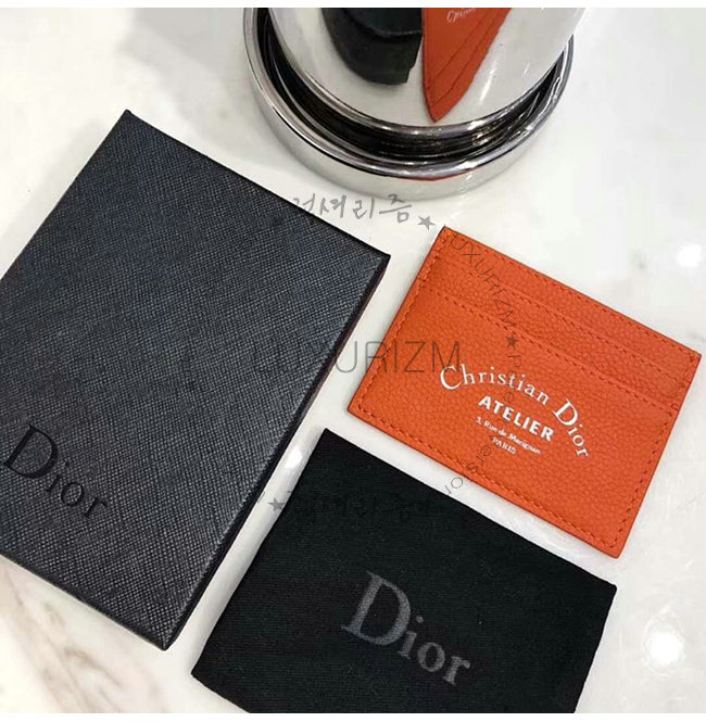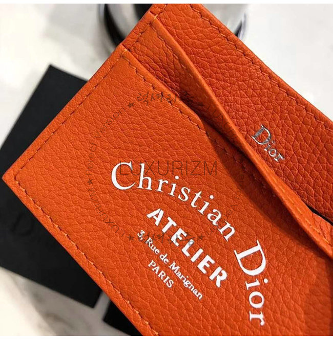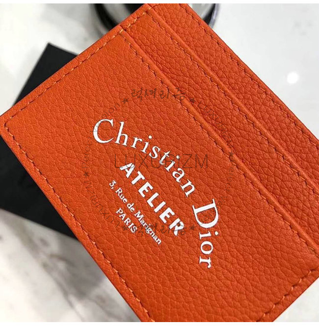 [스페셜오더]DIOR-2ATCH 디올 그레인 송아지 가죽 오렌지 카드 지갑