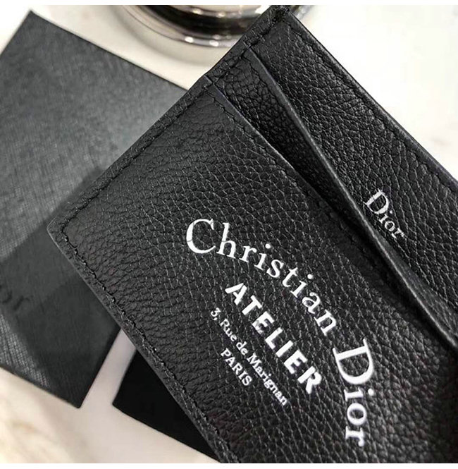 [스페셜오더]DIOR-2ATCH 디올 그레인 송아지 가죽 블랙 카드 지갑