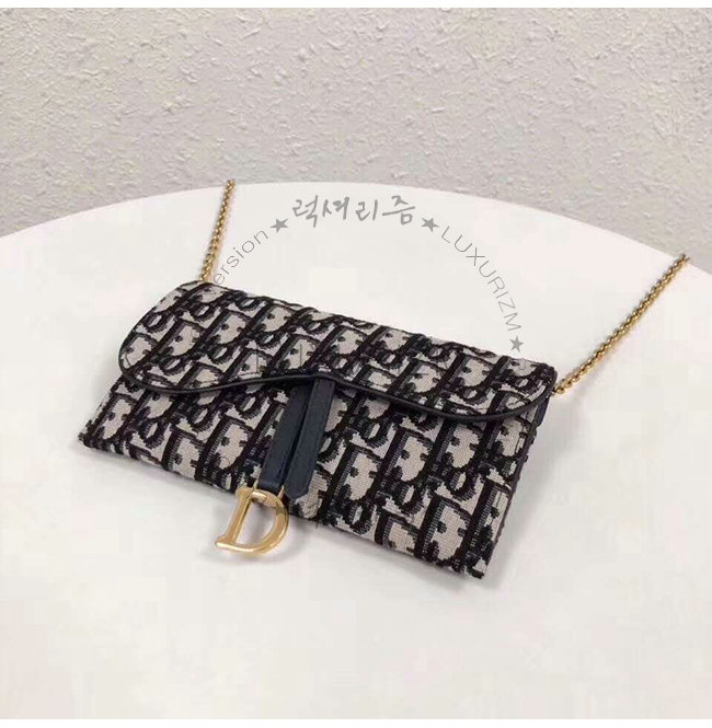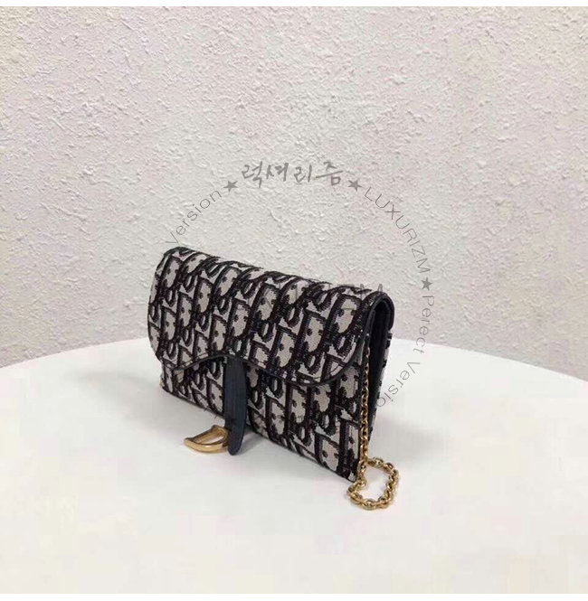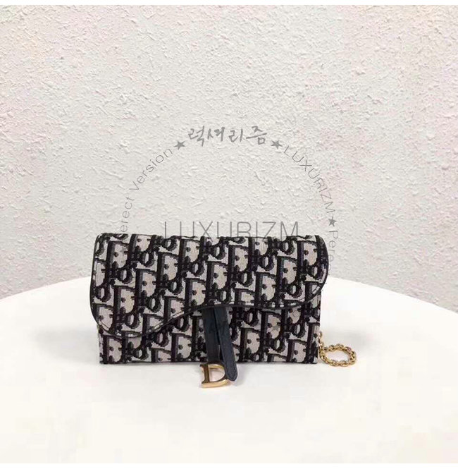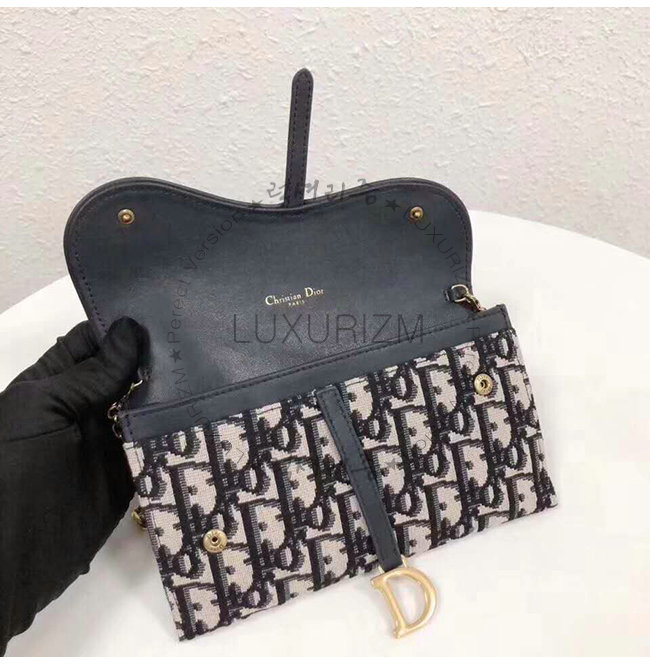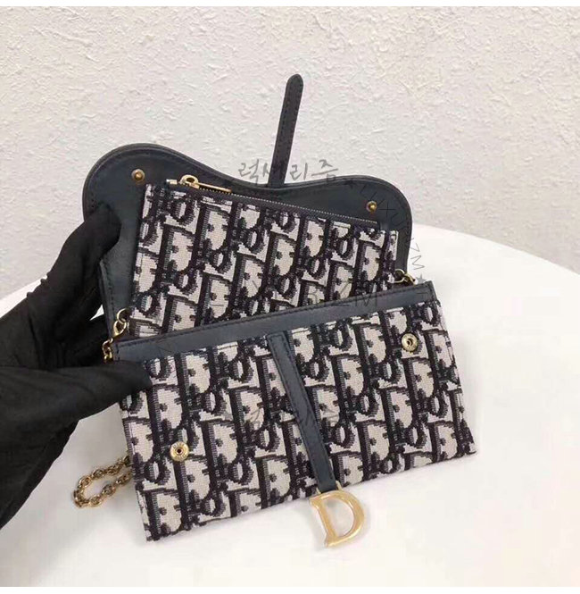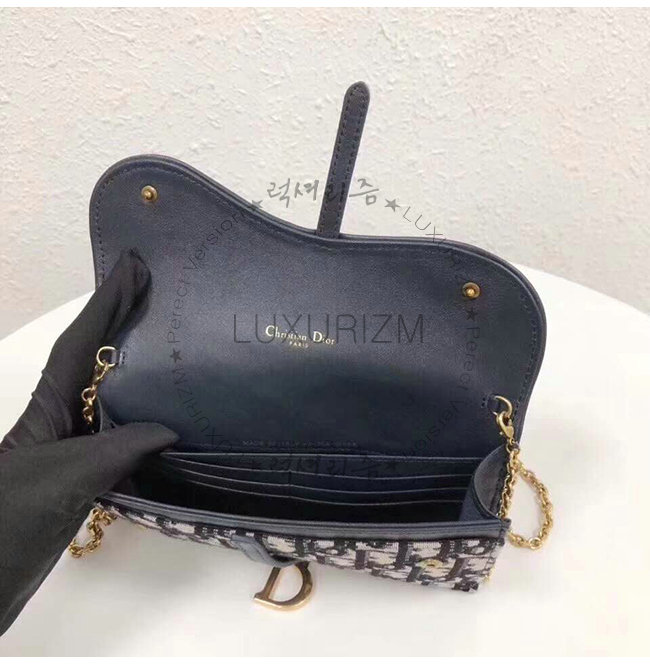 [스페셜오더]DIOR-S5614 디올 블루 Dior Oblique 자카드 패브릭 SADDLE 새들지갑