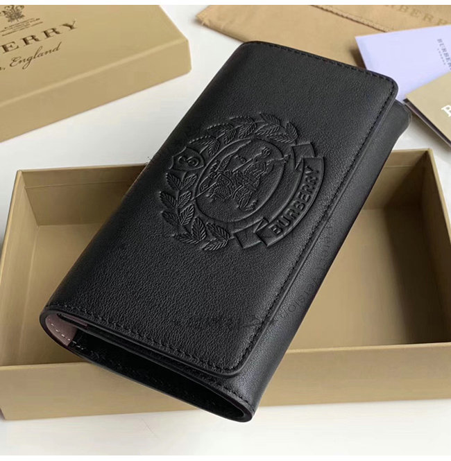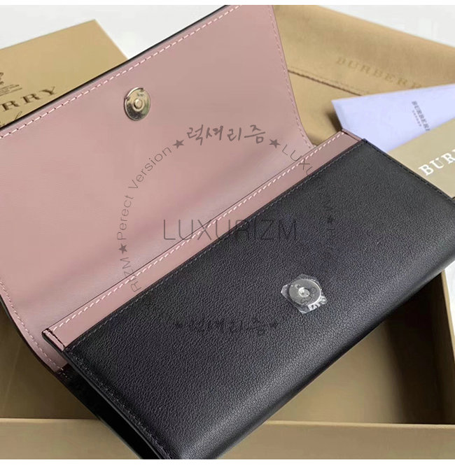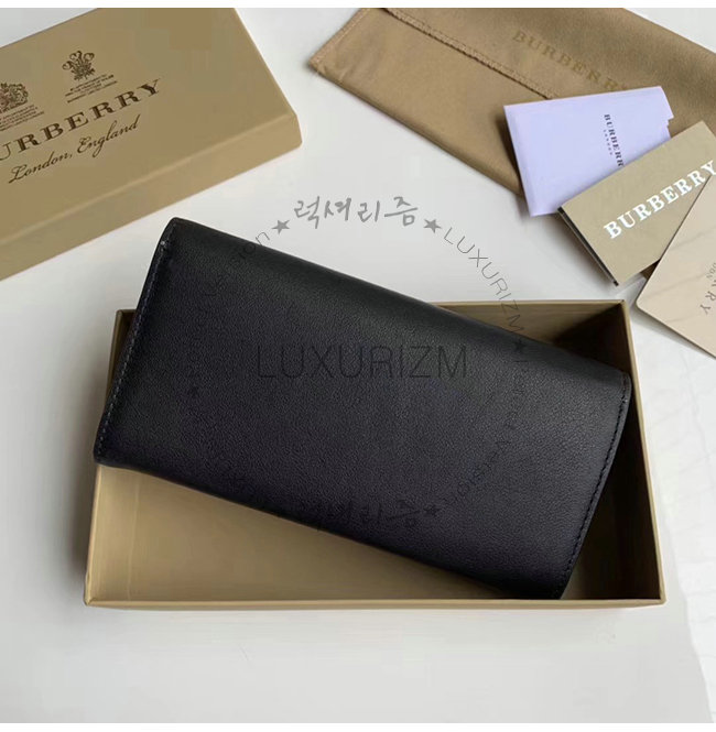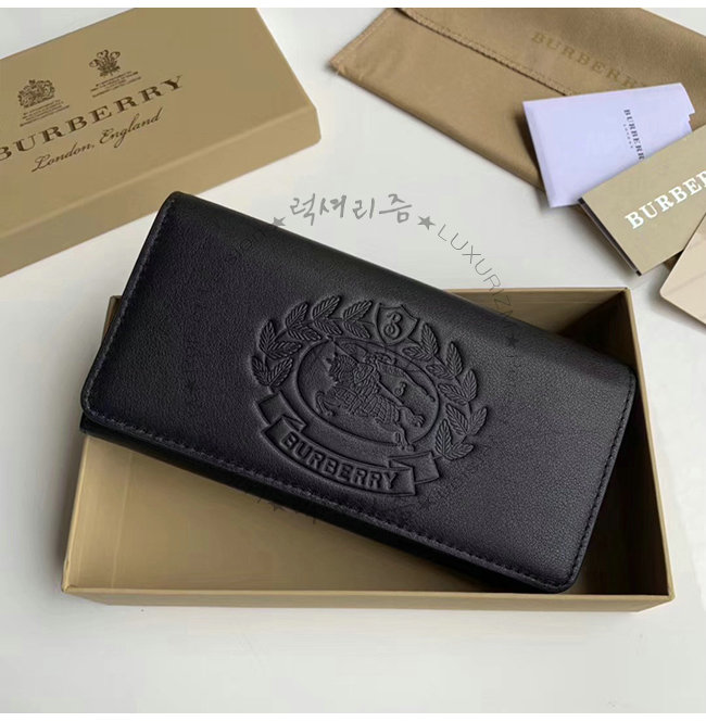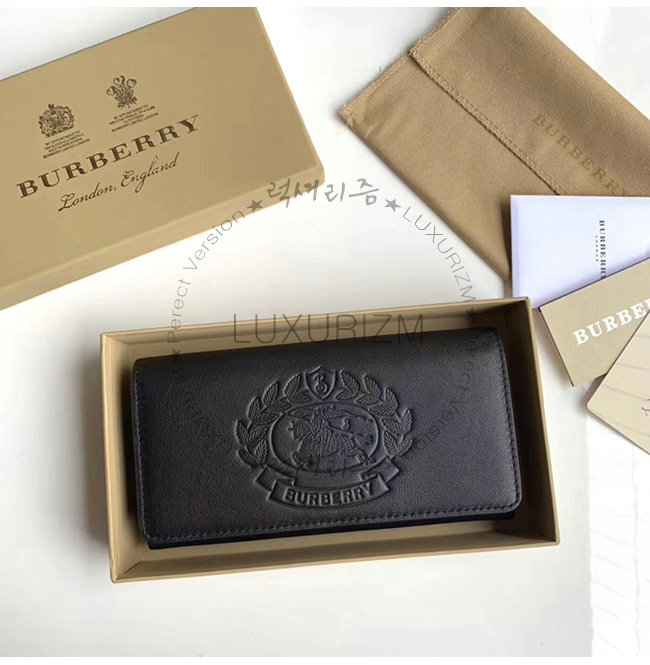 [스페셜오더]BURBERRY-40779821 버버리 블랙 송아지 가죽 엠보싱 크레스트 투톤 장지갑