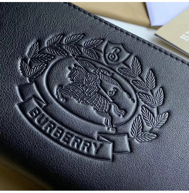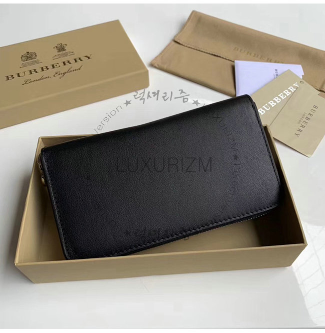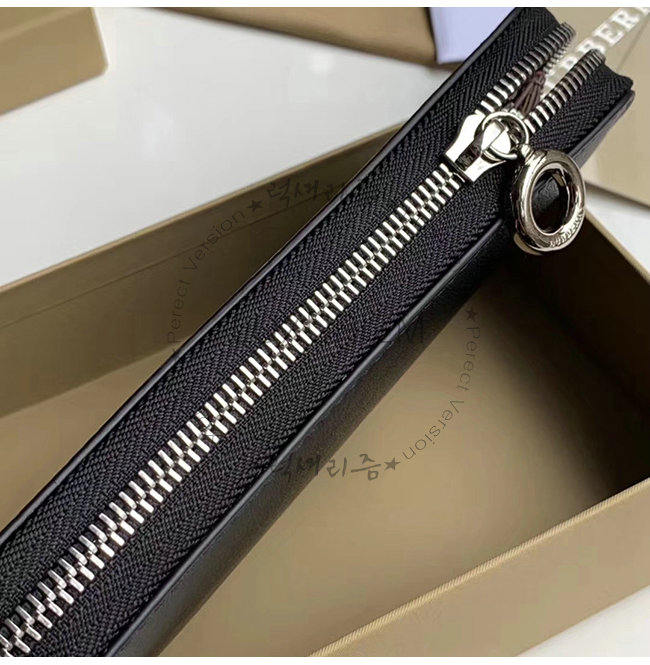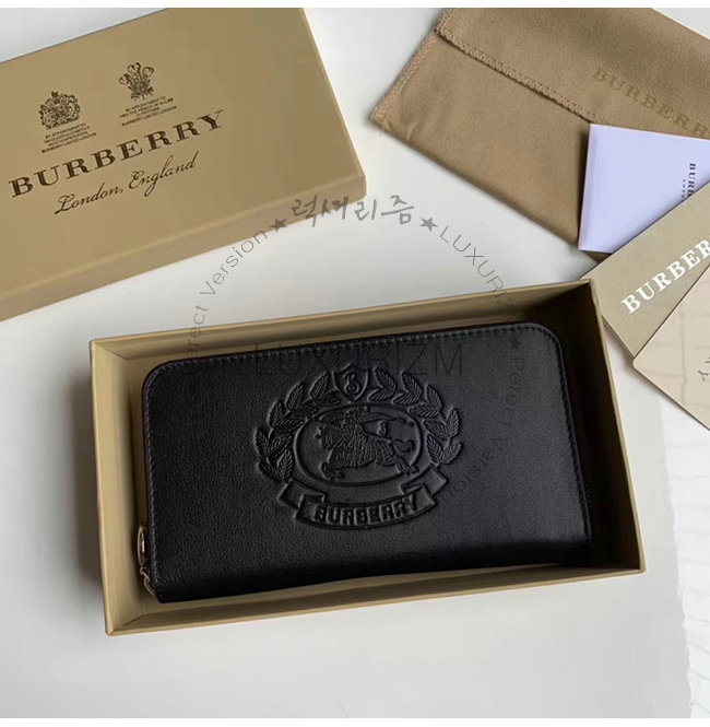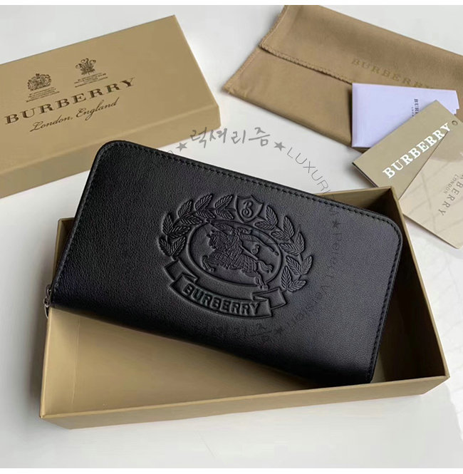 [스페셜오더]BURBERRY-40779851 버버리 블랙 송아지 가죽 엠보싱 크레스트 투톤 지퍼라운드 지갑