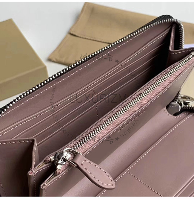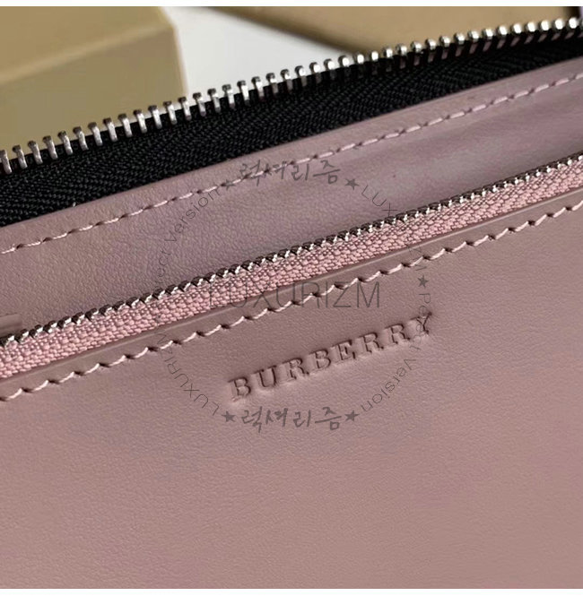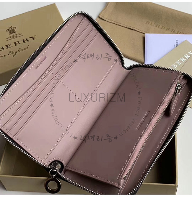 [스페셜오더]BURBERRY-40779851 버버리 초크 핑크 송아지 가죽 엠보싱 크레스트 투톤 지퍼라운드 지갑