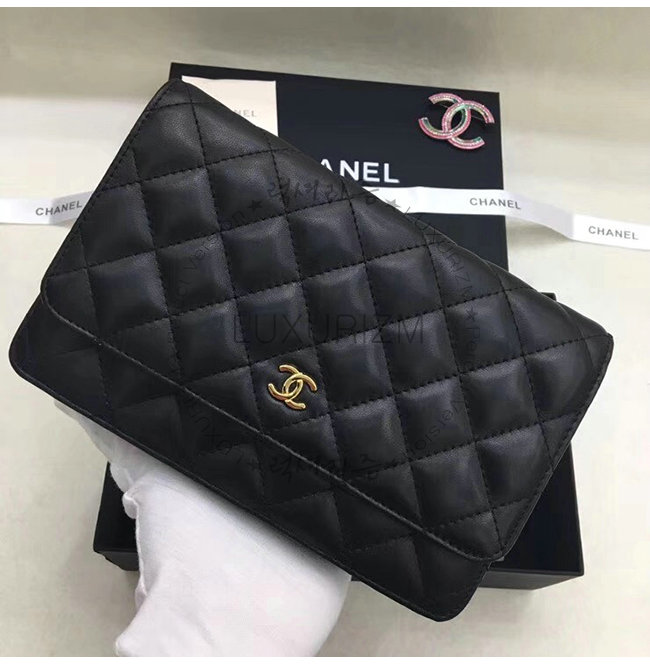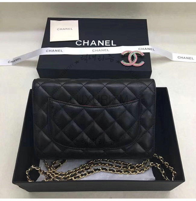 [스페셜오더]CHANEL-A33814 샤넬 클래식 램스킨 블랙 골드메탈 체인 지갑