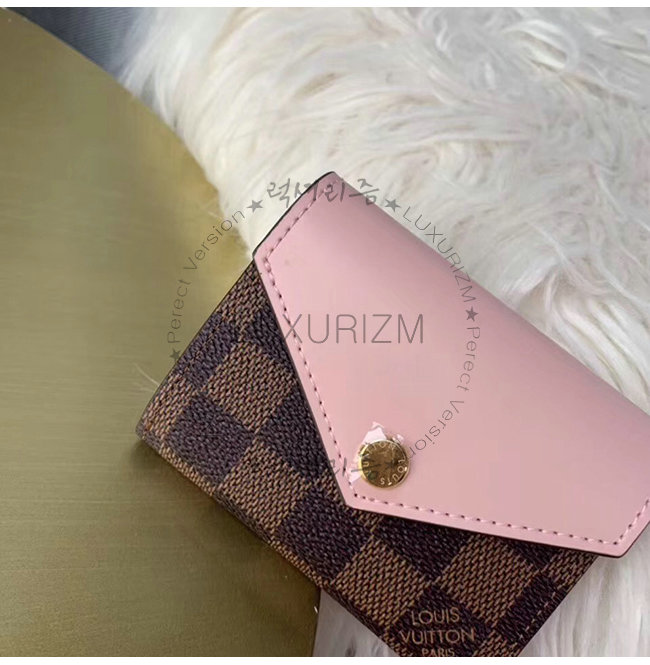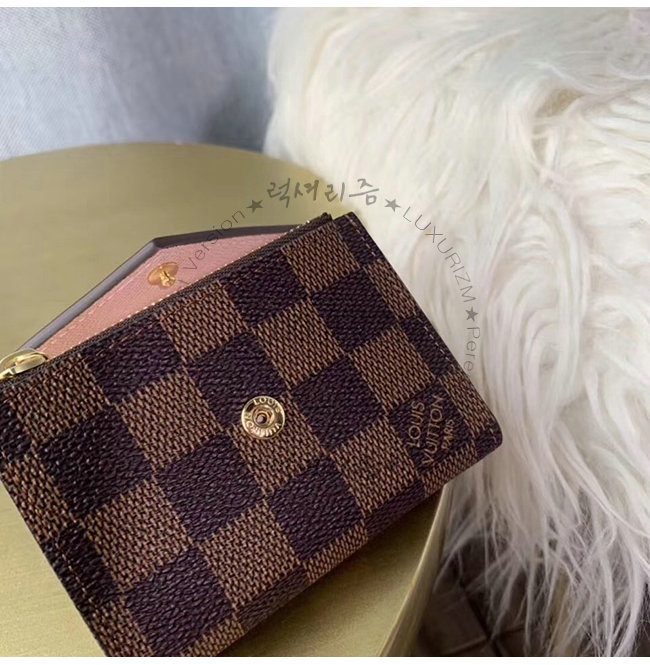 [스페셜오더]LOUIS VUITTON-N60167 루이비통 로즈 발레린 송아지 가죽 다미에 에벤 캔버스 조에 월릿