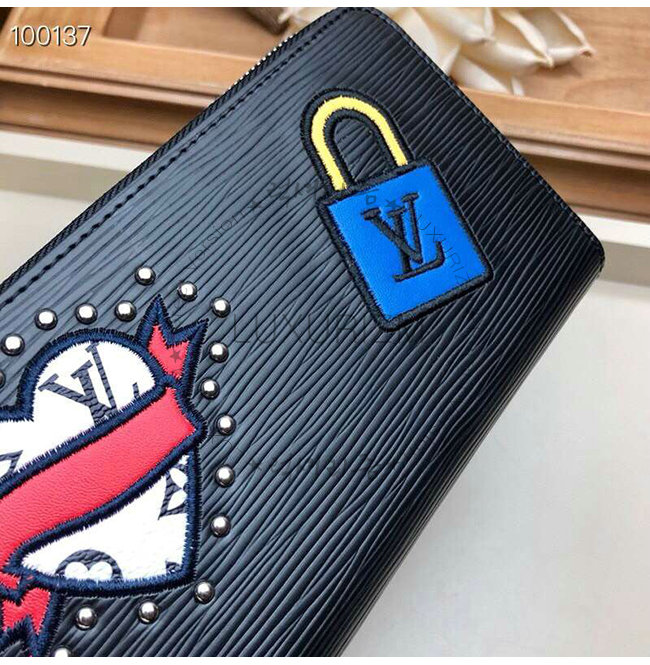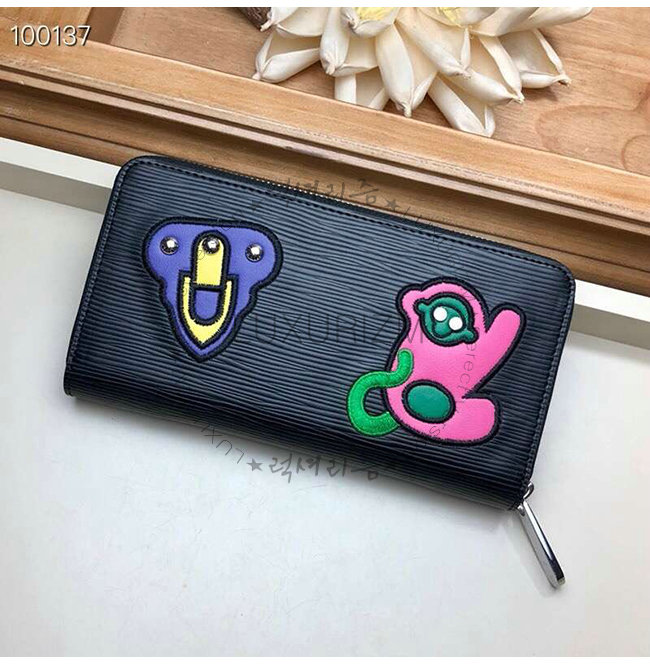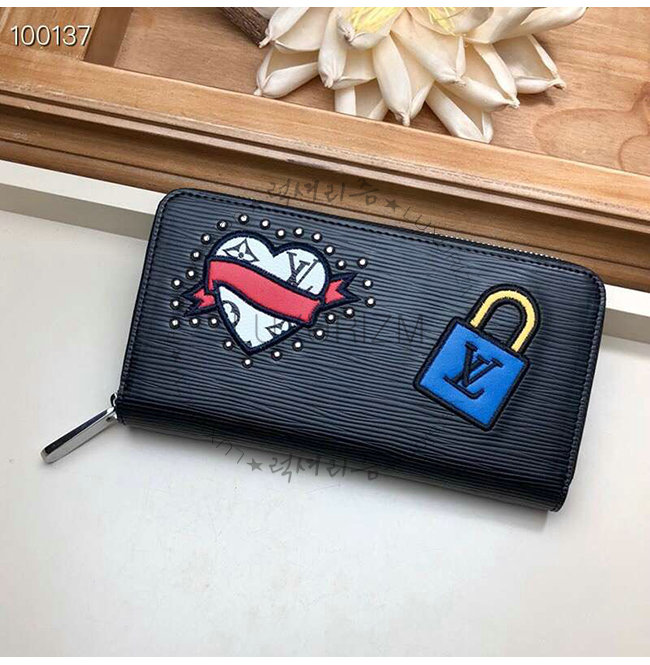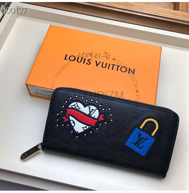 [스페셜오더]LOUIS VUITTON-M63376 루이비통 느와르 에삐 레더 패치 디테일 지피 월릿