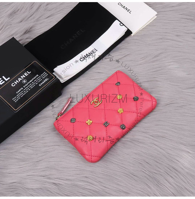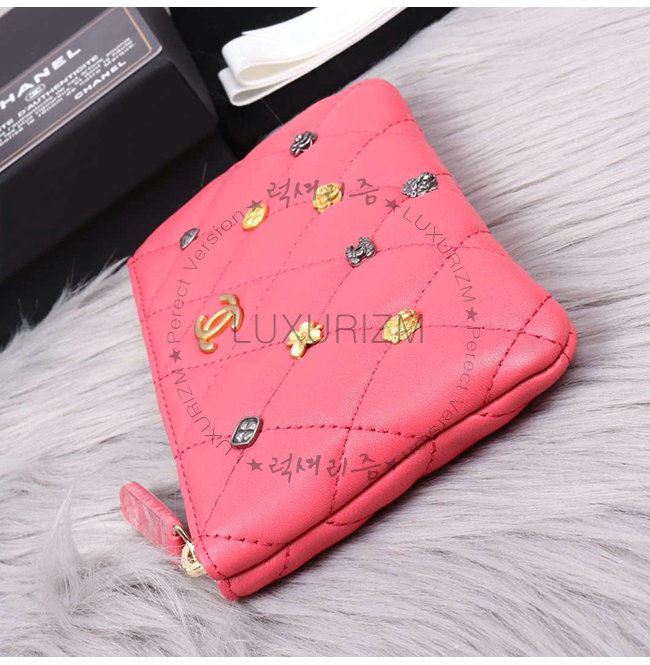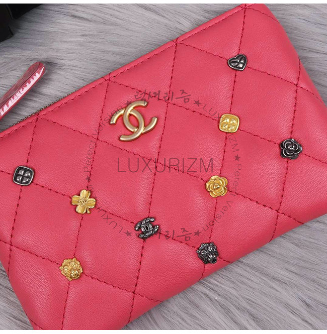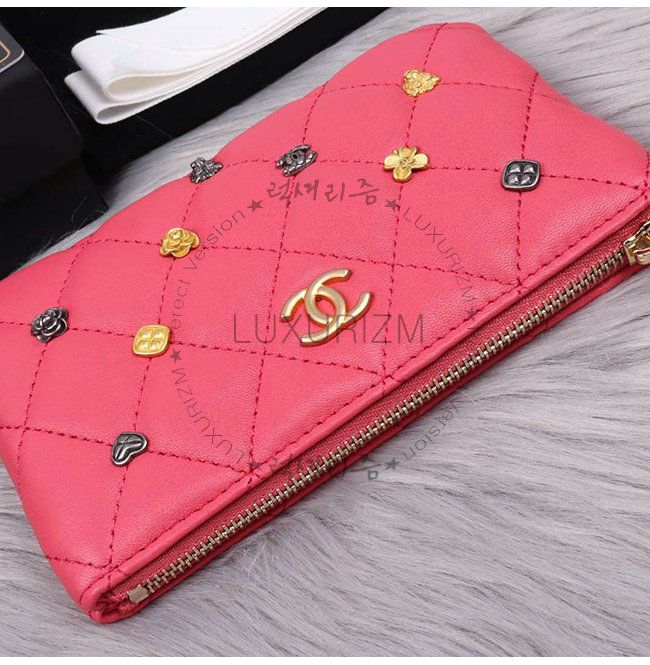 [스페셜오더]CHANEL-A81639 샤넬 핑크 램스킨 스터드 장식 골드메탈 케이스