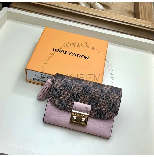 [스페셜오더]LOUIS VUITTON-N60208 루이비통 핑크 송아지 가죽 다미에 에벤 크로아제트 컴팩트 월릿