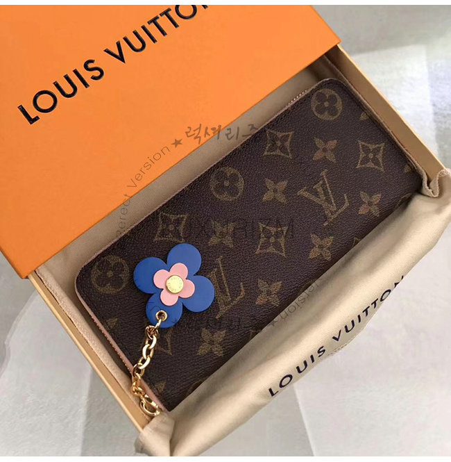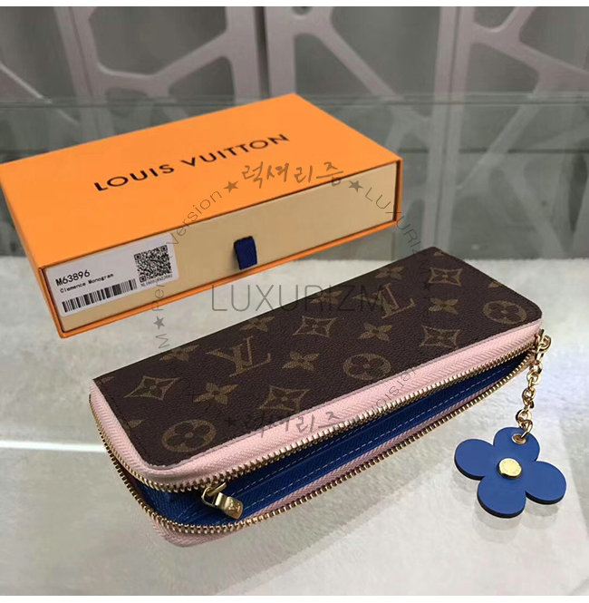 [스페셜오더]LOUIS VUITTON-M63896 루이비통 모노그램 블루 플라워 참 장식 클레망스 월릿