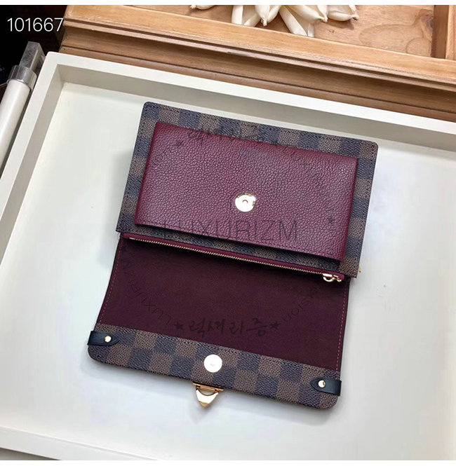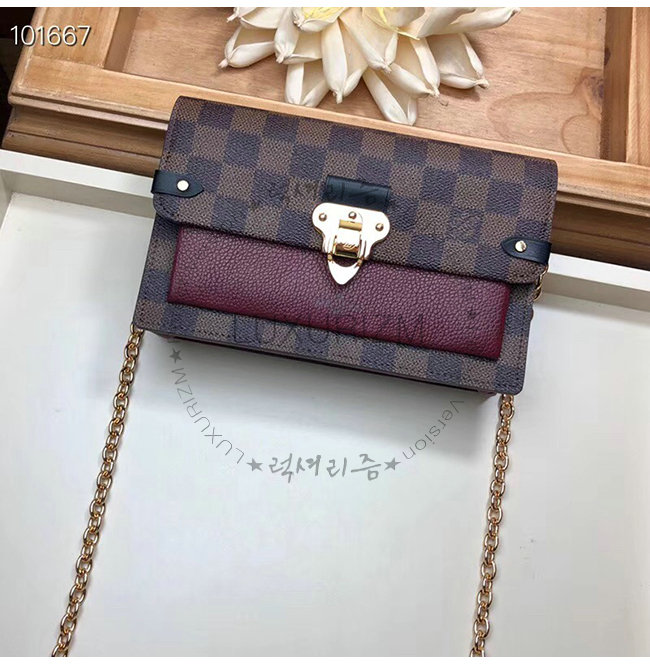 [스페셜오더]LOUIS VUITTON-N60222 루이비통 다미에 버건디 송아지 가죽 바뱅 체인월릿