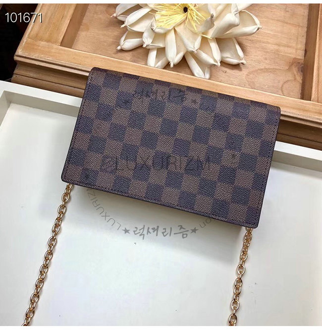 [스페셜오더]LOUIS VUITTON-N60222 루이비통 다미에 버건디 송아지 가죽 바뱅 체인월릿