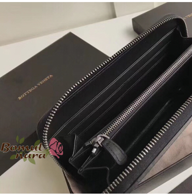 [스페셜오더]BOTTEGA VENETA-566197 보테가 베네타 네로 레제로 가죽 짚 어라운드 지갑