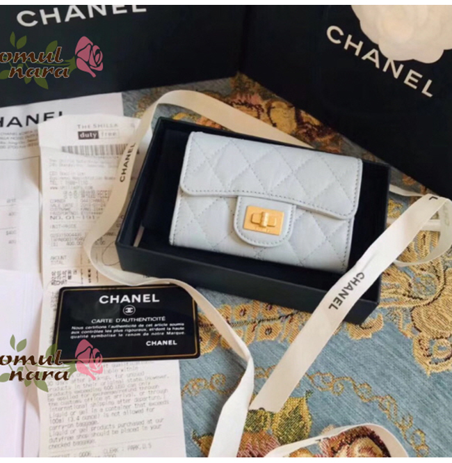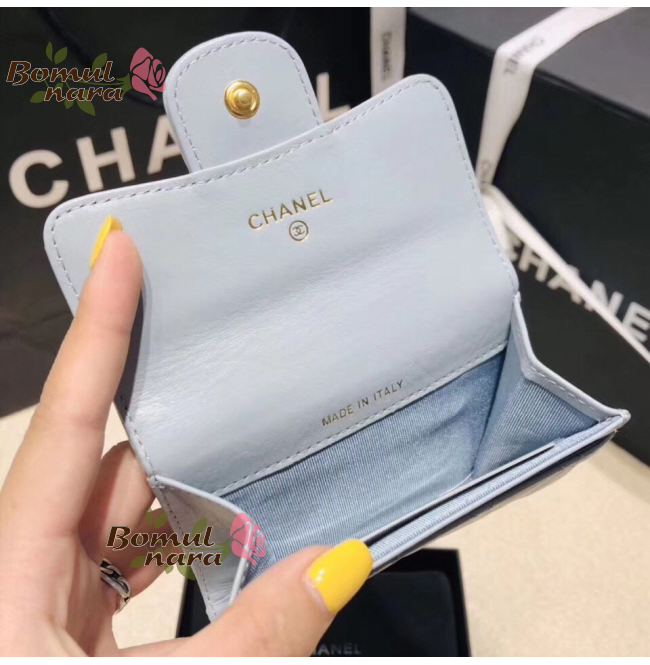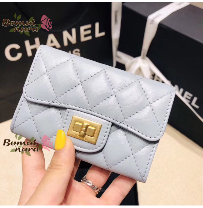 [스페셜오더]CHANEL-A80831 샤넬 라이트 블루 골드 메탈 2.55 플랩 카드 홀더
