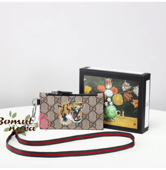 [스페셜오더]GUCCI-523903 9SEAN 8669 구찌 타이거 프린트 GG 슈프림 Web 스트랩 카드 케이스