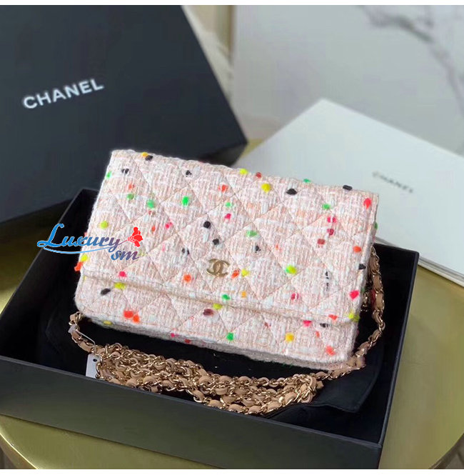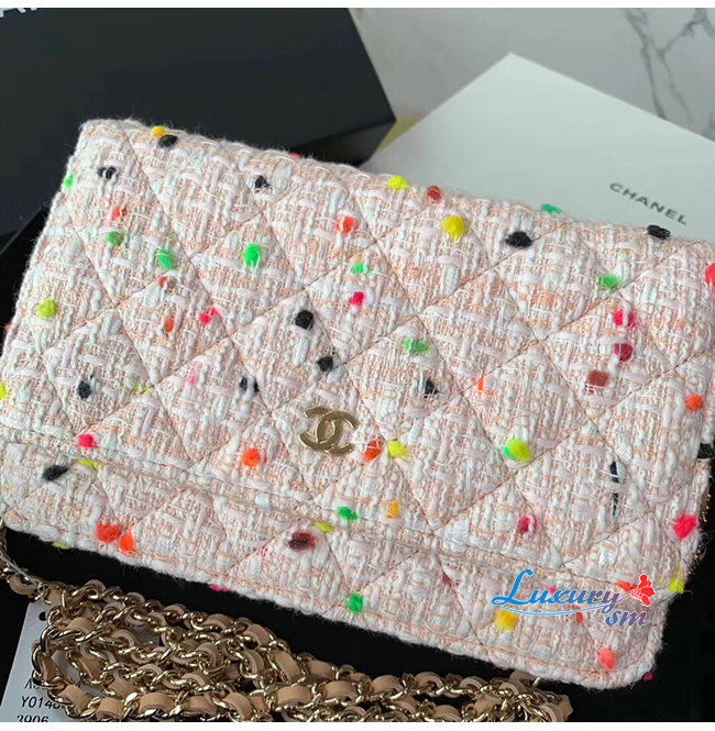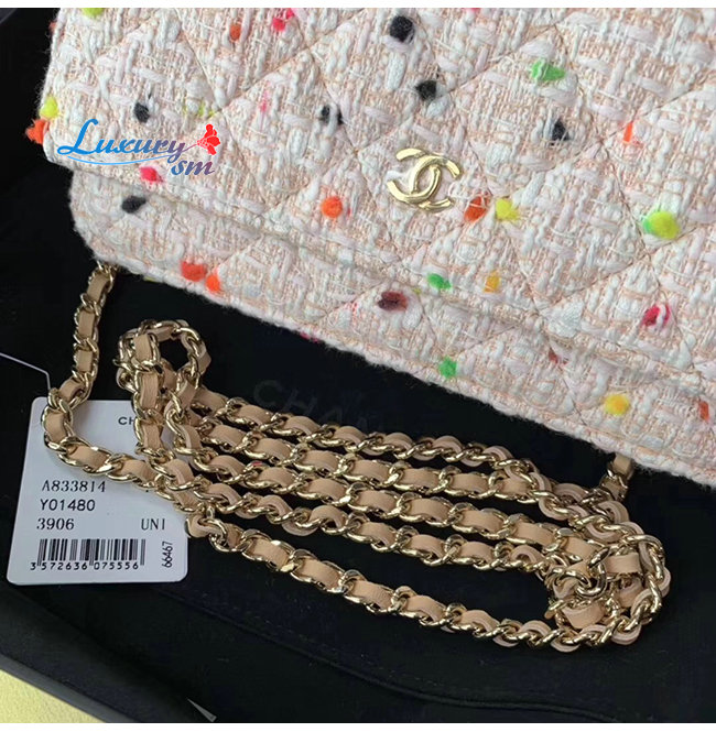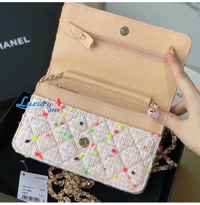 [스페셜오더]CHANEL-A33814 샤넬 코랄 코튼 트위드 골드메탈 클래식 체인지갑