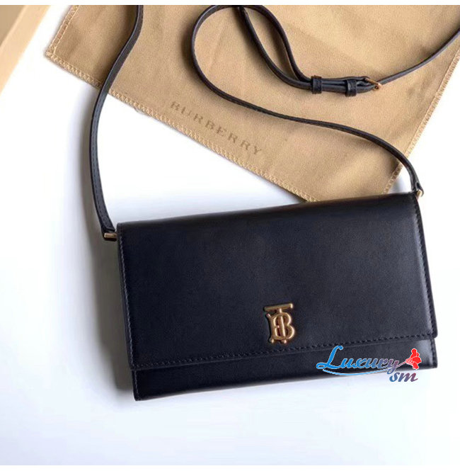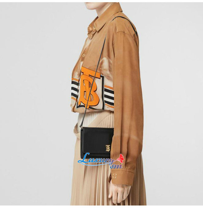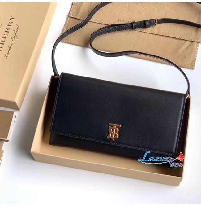 [스페셜오더]BURBERRY-80097551 버버리 블랙 송아지 가죽 디태처블 스트랩 모노그램 모티프 지갑