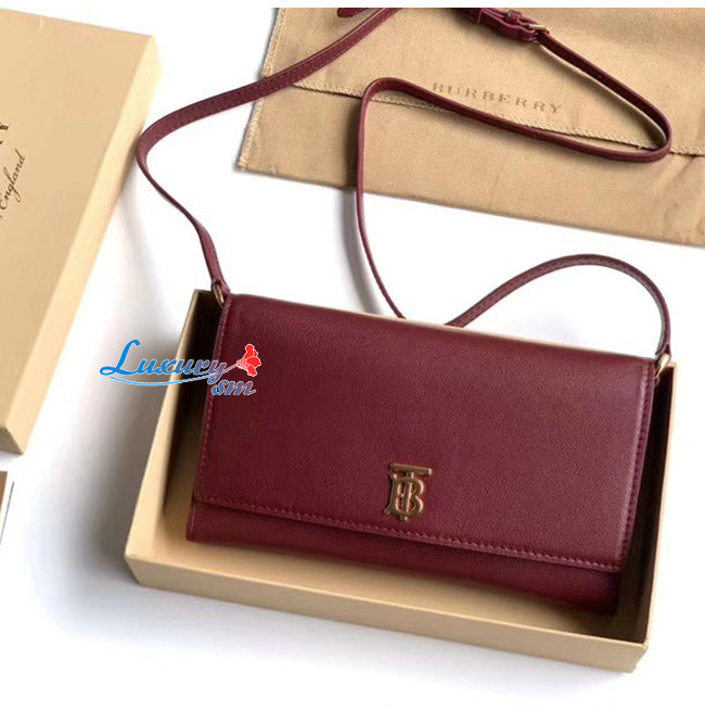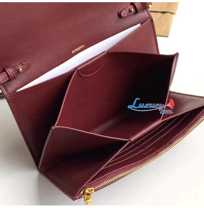 [스페셜오더]BURBERRY-80097551 버버리 레드 송아지 가죽 디태처블 스트랩 모노그램 모티프 지갑
