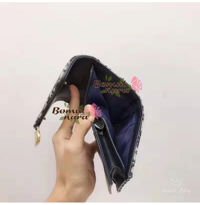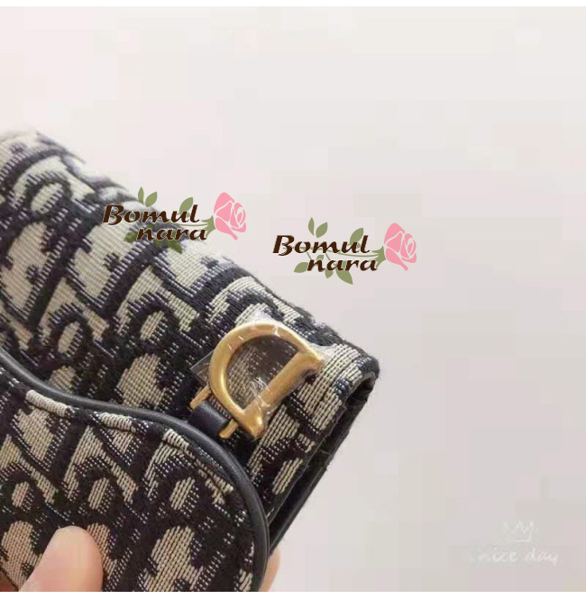 오블리크 소재에 새들 디자인으로 레이디 디올 지갑은