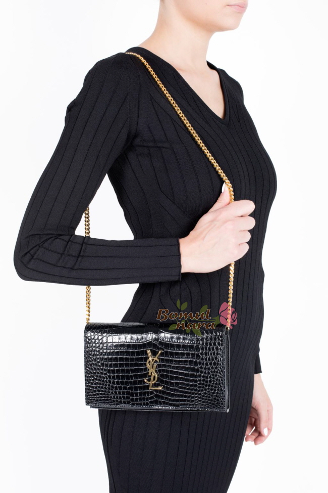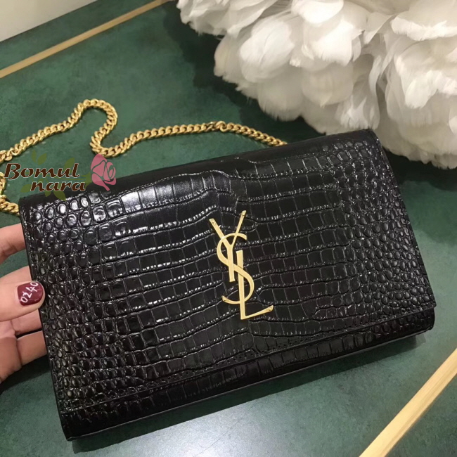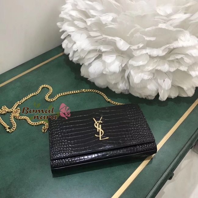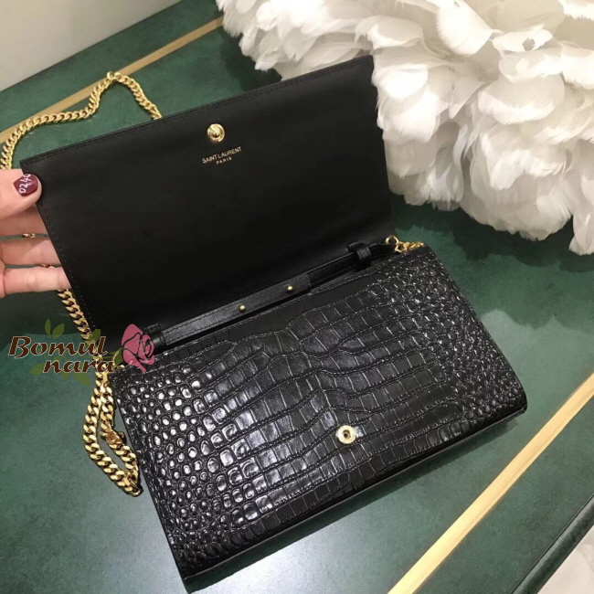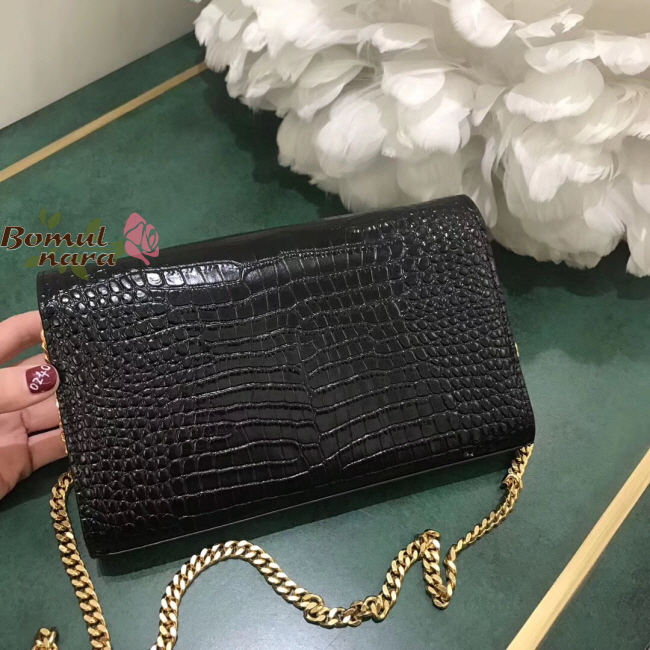 [스페셜오더]SAINT LAURENT-377829 생로랑 블랙 골드 크로커다일 모노그램 체인 지갑