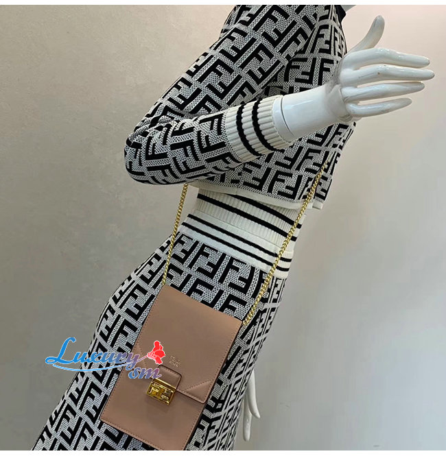 [스페셜오더]FENDI-8M0436 펜디 베이지 송아지 가죽 버티컬 체인 지갑 캔 유