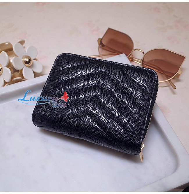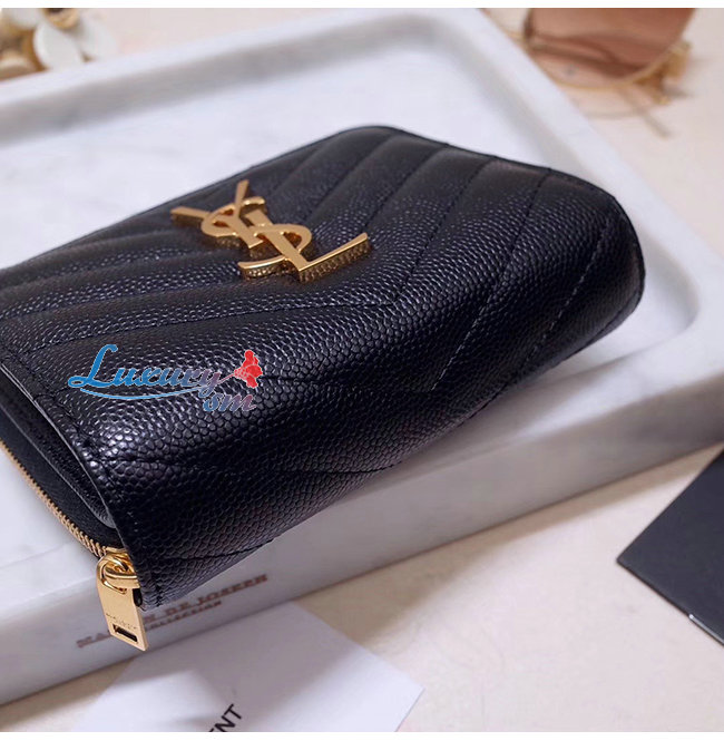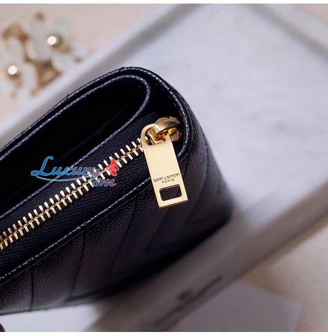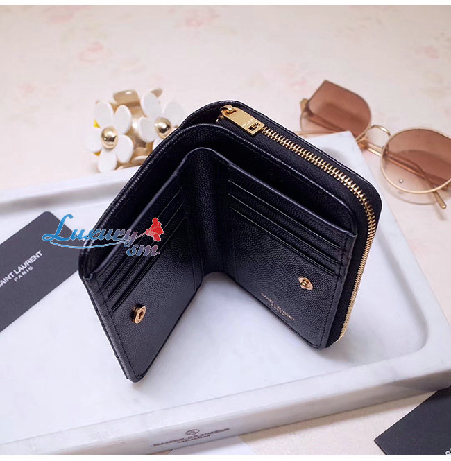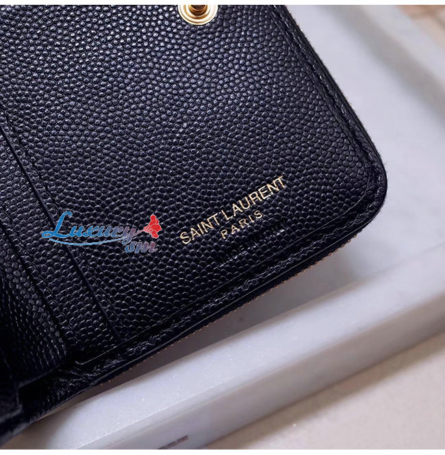 SAINT LAURENT-403723 생 로랑 블랙 그랑 드 뿌드르 텍스처드 마틀라세 가죽 모노그램 생 로랑 컴팩트 지퍼 어라운드 지갑