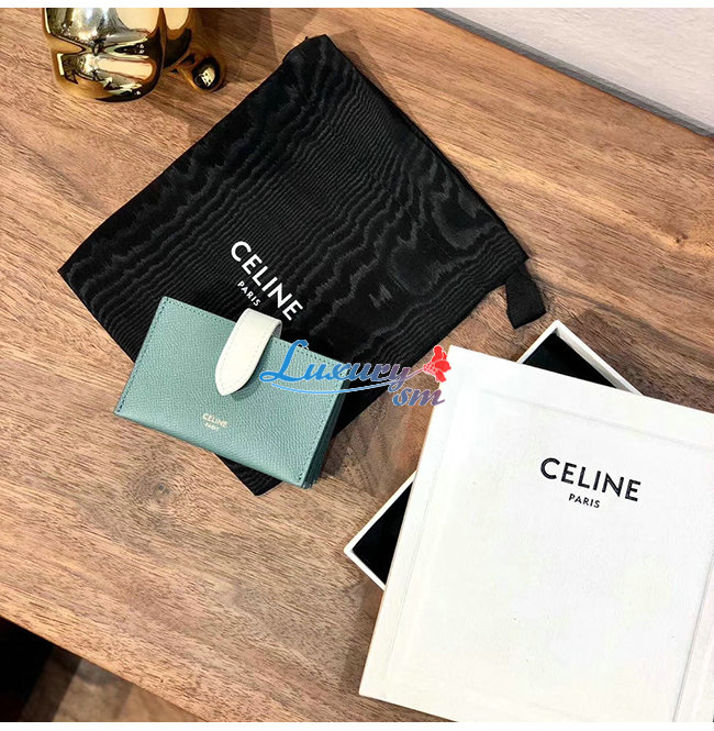 [스페셜오더]CELINE-10B693 셀린느 셀라돈/화이트 카프스킨 아코디언 카드 홀더