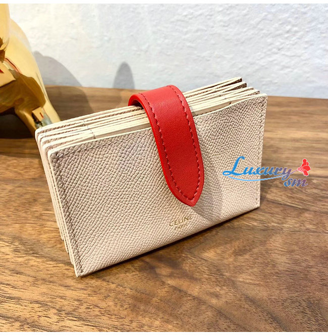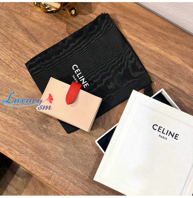 [스페셜오더]CELINE-10B693 셀린느 파우더/레드 카프스킨 아코디언 카드 홀더