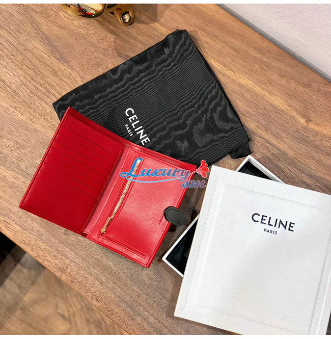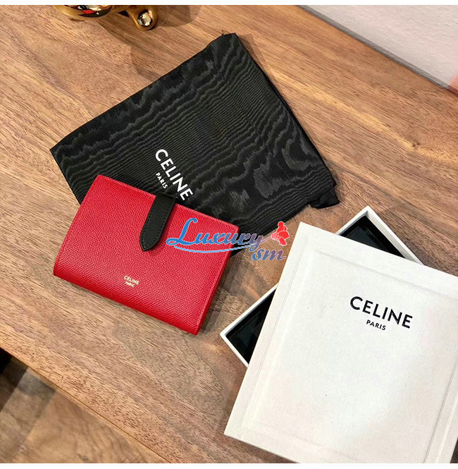 [스페셜오더]CELINE-10B643 셀린느 레드/블랙 카프스킨 미디엄 스트랩 월릿