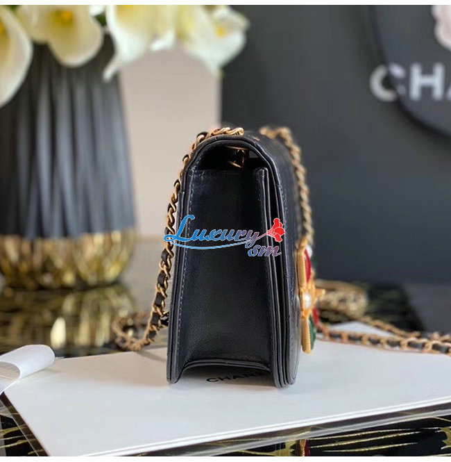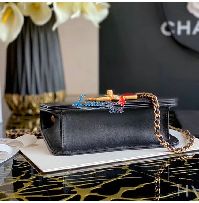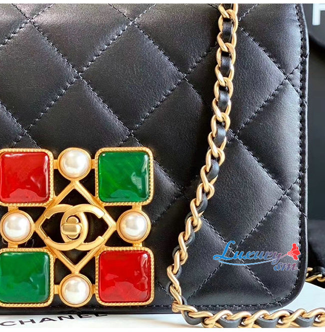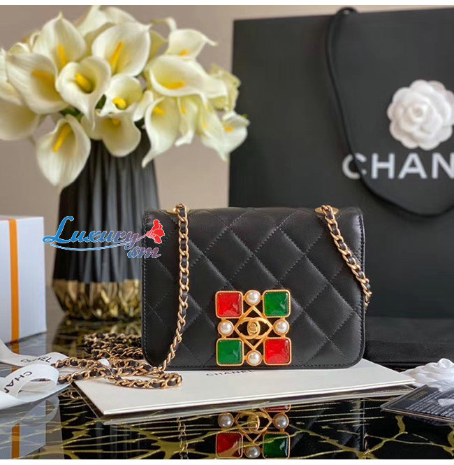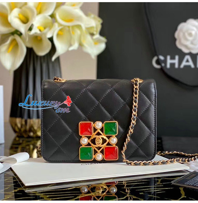 [스페셜오더]CHANEL-AS2251 샤넬 블랙 카프스킨 크리스탈 펄 레진 골드메탈 스몰 플랩백