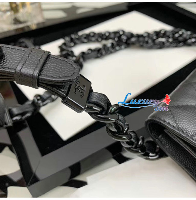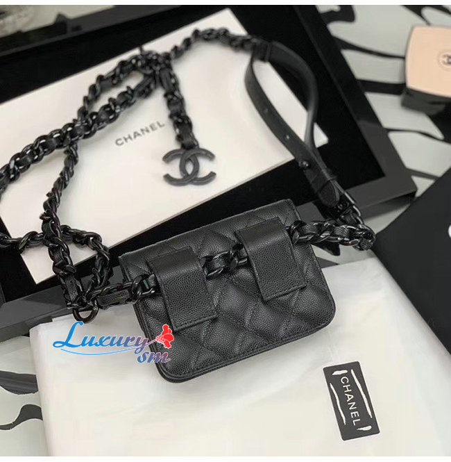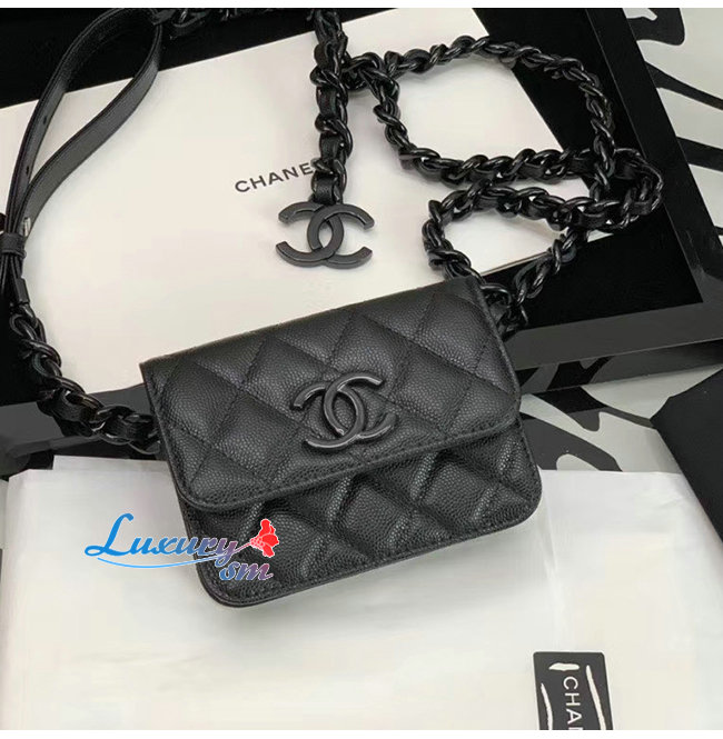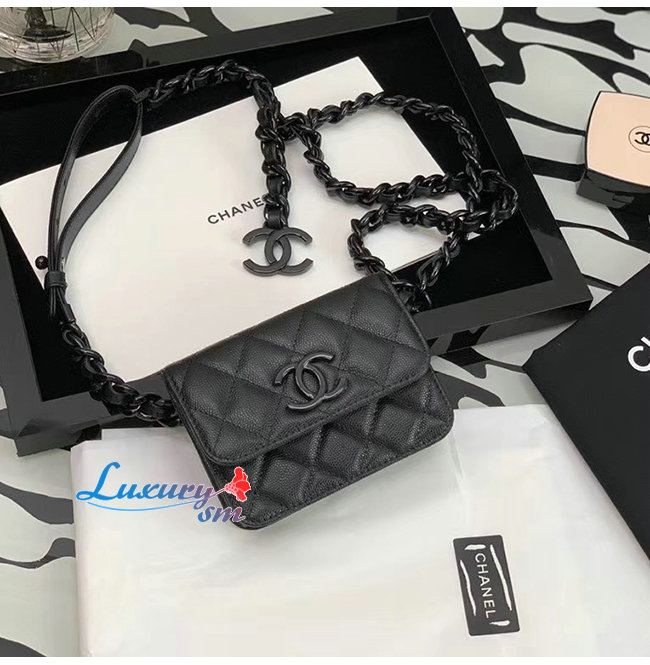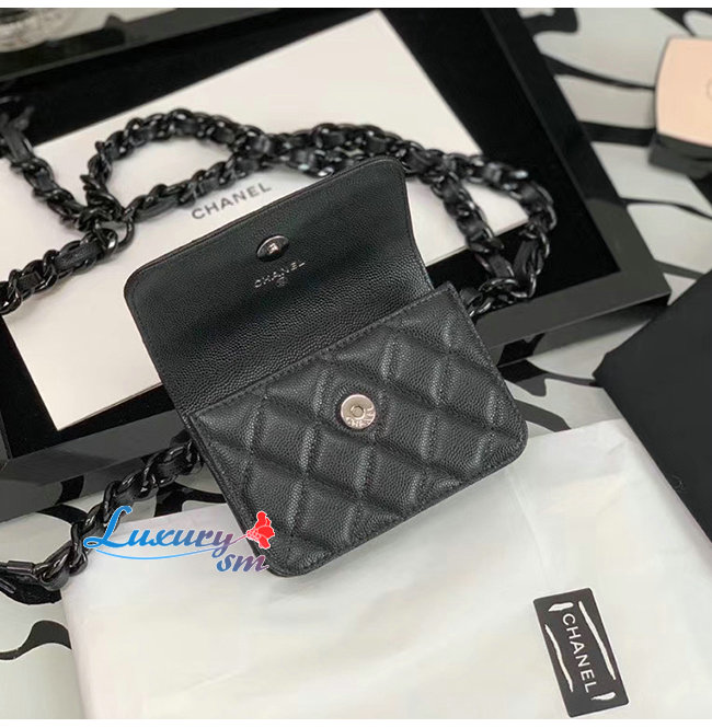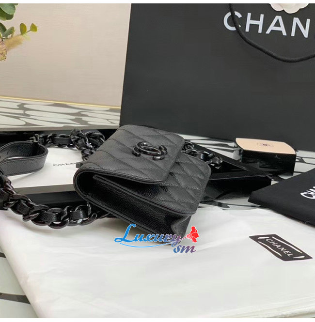 [스페셜오더]CHANEL-AP1955 샤넬 블랙 그레인드 카프스킨 래커드 메탈 벨트 플랩 카드 홀더