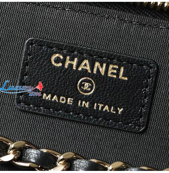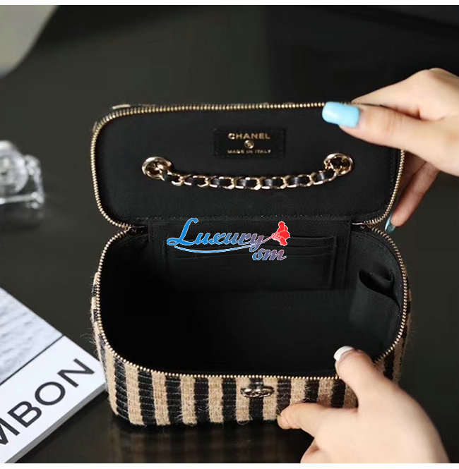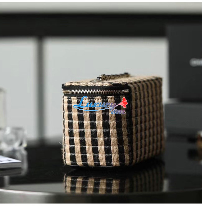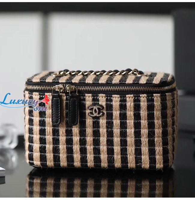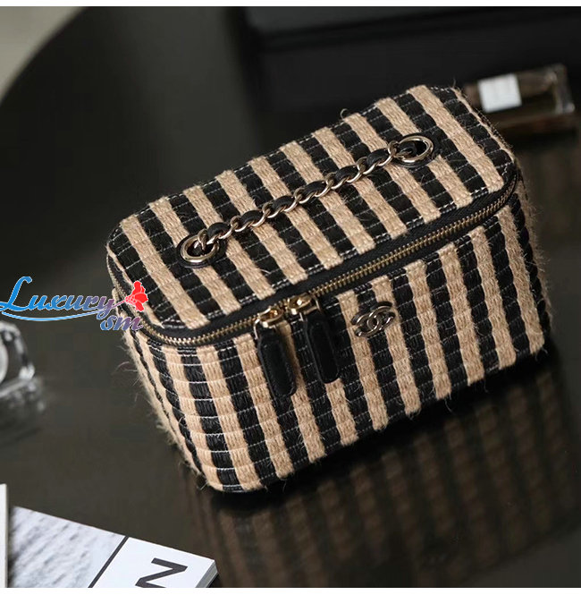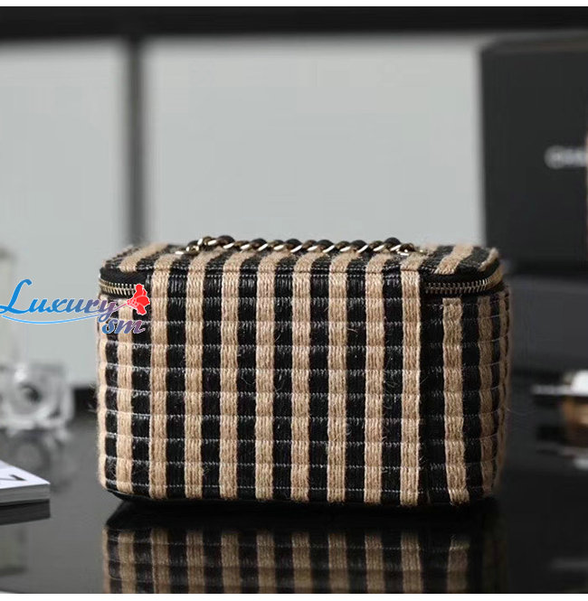 [스페셜오더]CHANEL-AP1999 샤넬 블랙/베이지 라피아 황마 골드 메탈 체인 코스메틱 케이스