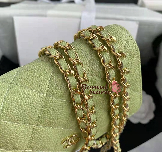 [스페셜오더]CHANEL-AP1649 샤넬 그린 캐비어 골드 메탈 WOC 미니 체인 지갑